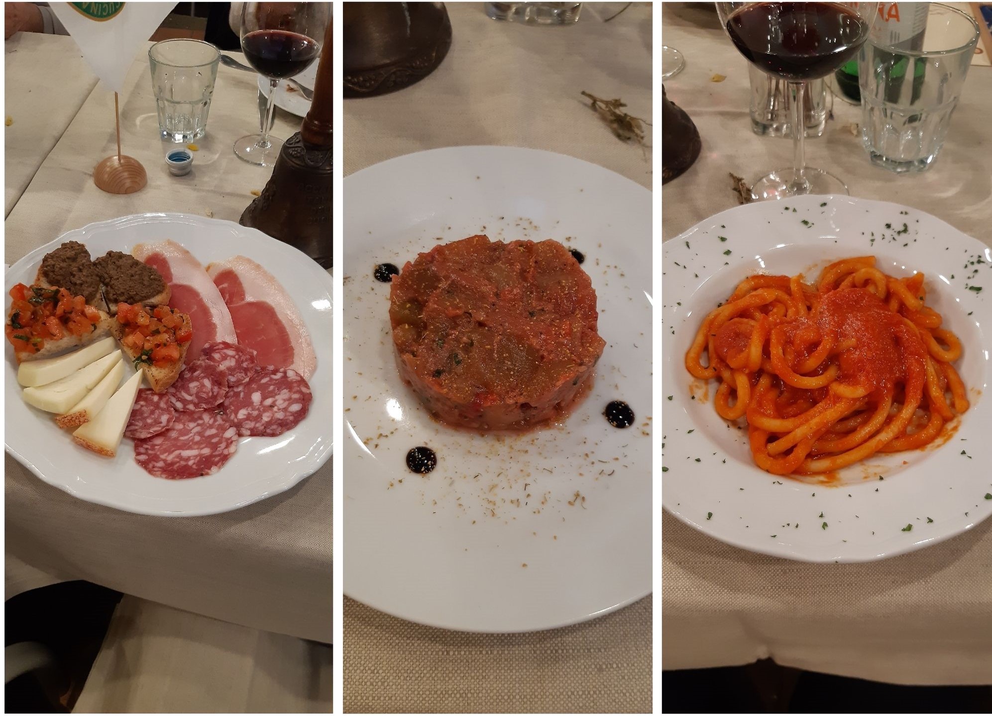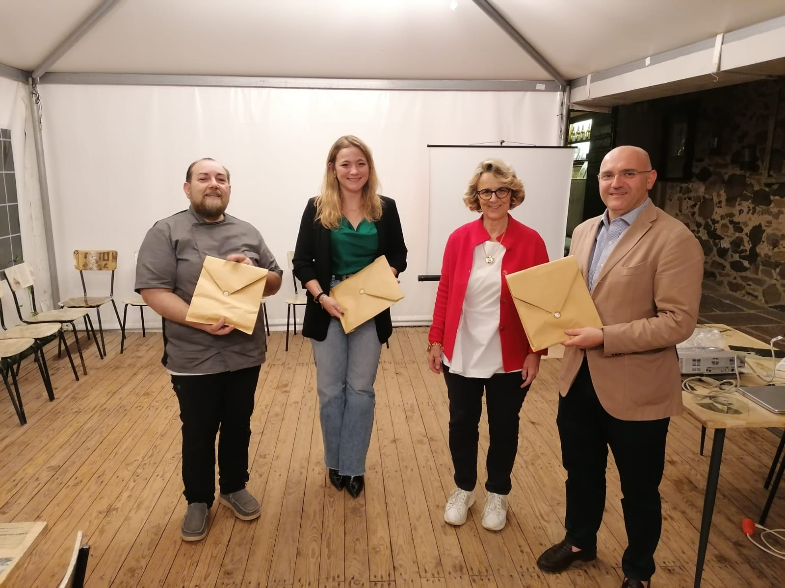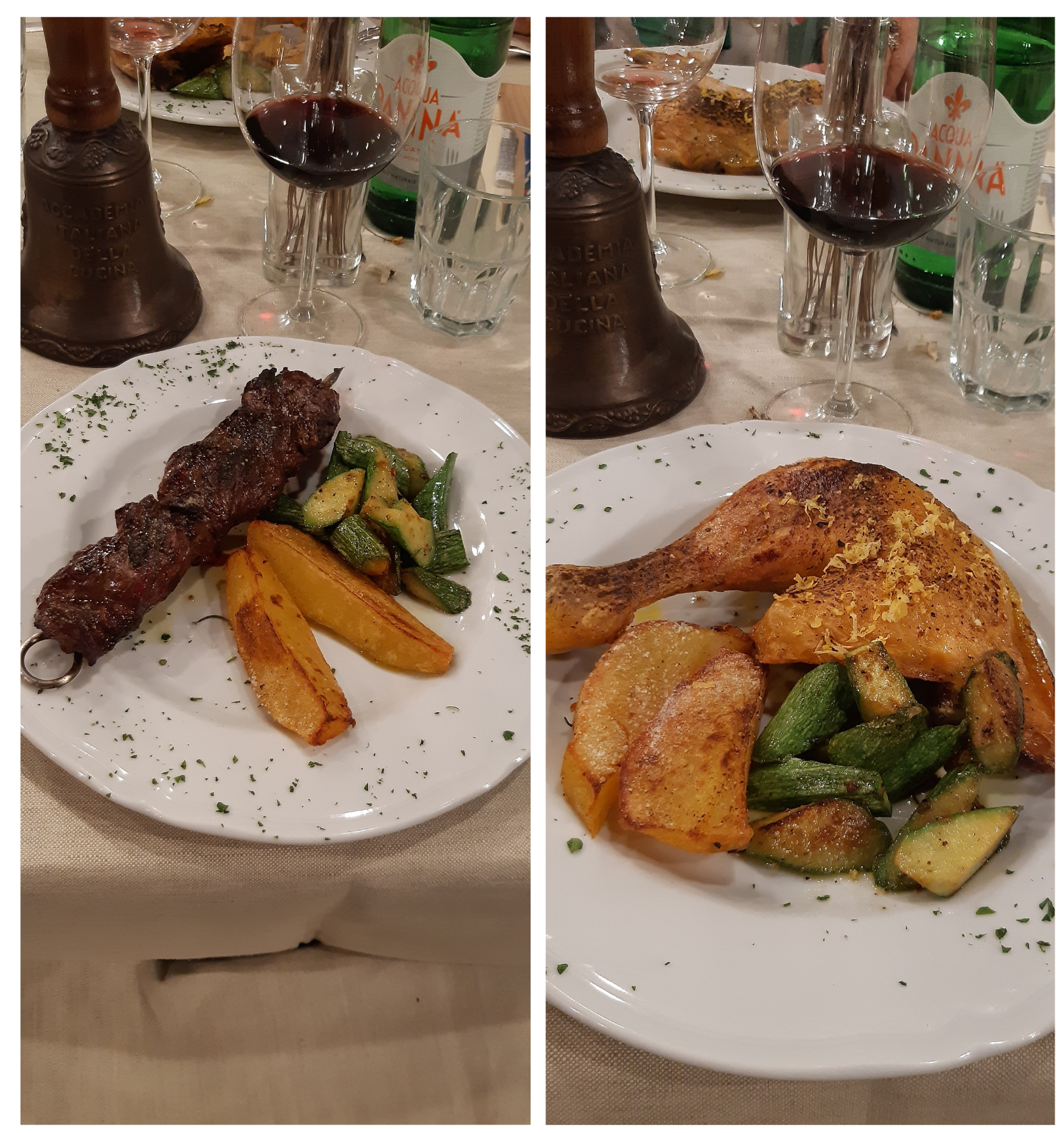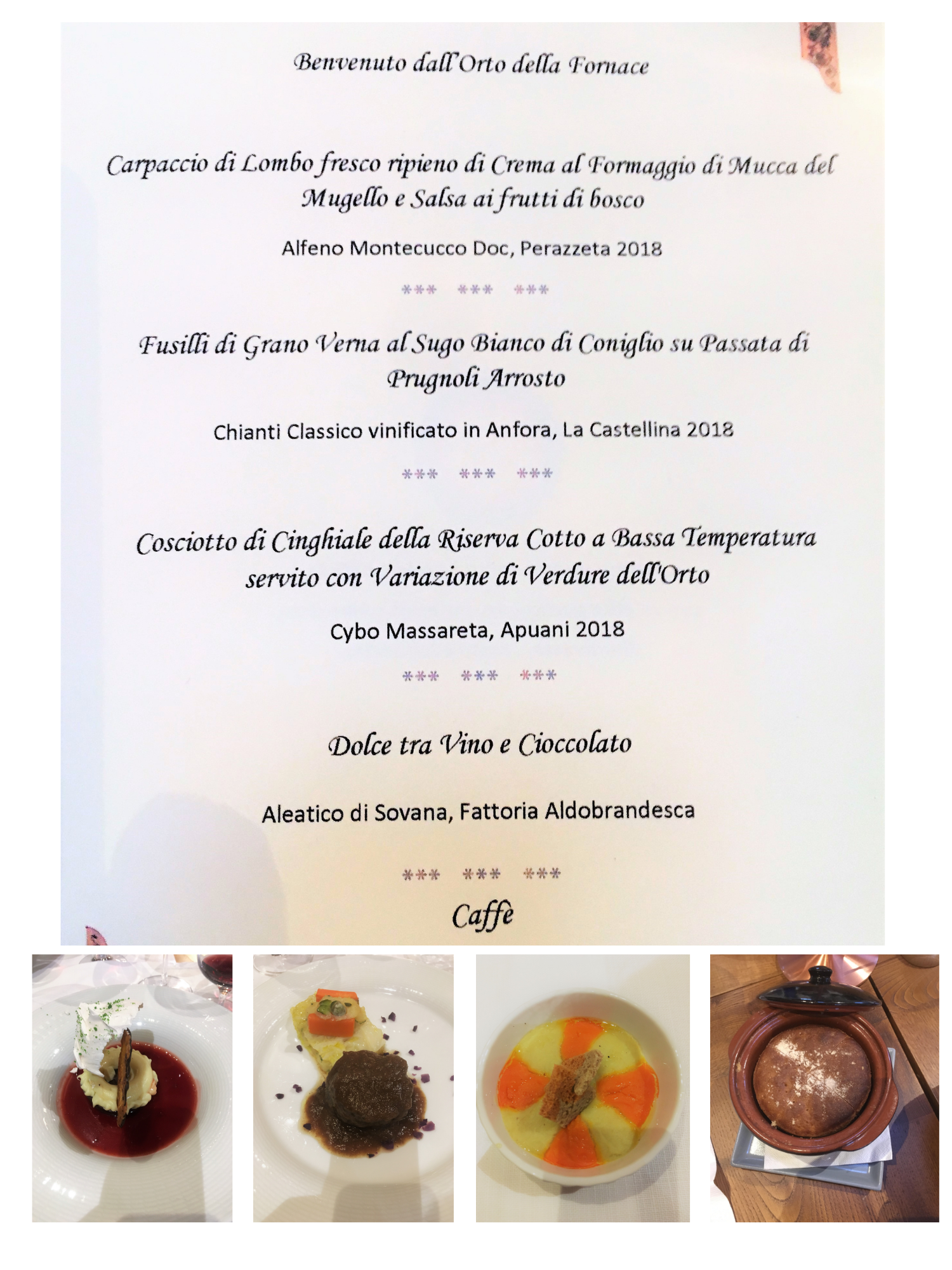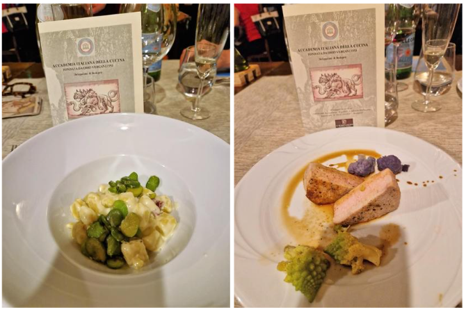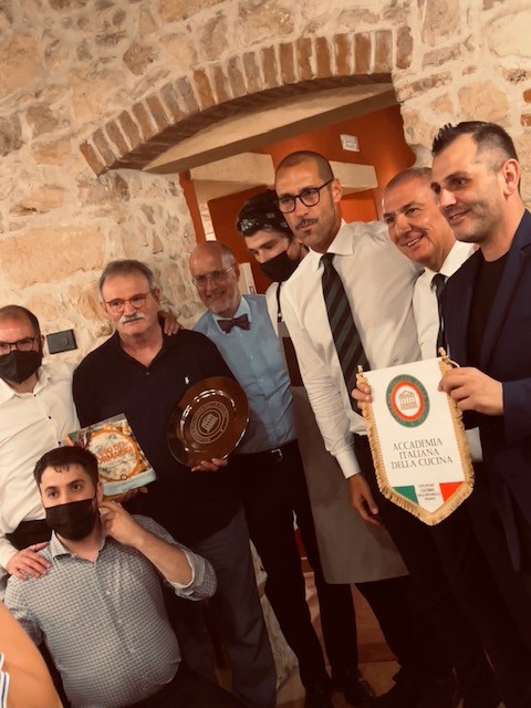 La Delegazione si è ritrovata al ristorante "La Fornace de’ Medici" a Vaglia (FI), un’antica fornace fatta costruire da Francesco I dei Medici, situata in un'incantevole valle proprio alle porte del Mugello. La serata si è svolta alla presenza del Segretario Generale Roberto Ariani (in foto 1 durante il suo intervento) che ha appuntato il distintivo ai due nuovi Accademici Simone Bettini (foto 2 in alto) e Luca Capecchi (foto 2 in basso), calorosamente accolti dai numerosi Accademici presenti. Il menu, proposto dal patron Guido Ciatti insieme al figlio Lorenzo e allo chef Vittorio Celentano, è stato molto apprezzato. I piatti, accuratamente preparati con i prodotti biologici provenienti dall’agriturismo all'interno del quale si trova il ristorante - le verdure dell’orto, i grani antichi per il pane e la pasta fatti in casa, i formaggi e le carni bianche - hanno suggerito il tema della riunione conviviale “Incontro al tema dell’anno” (foto 4. Il menu, il pane e alcuni dei piatti serviti). La serata, che si è svolta in un’atmosfera di festa e sentita amicizia, si è conclusa con la consegna del piatto dell’Accademia al patron, e del guidoncino allo chef (foto 3 da sinistra Guido Ciatti, lo chef Celentano, il Segretario Generale Roberto Ariani e la Delegata Monica Sforzini).