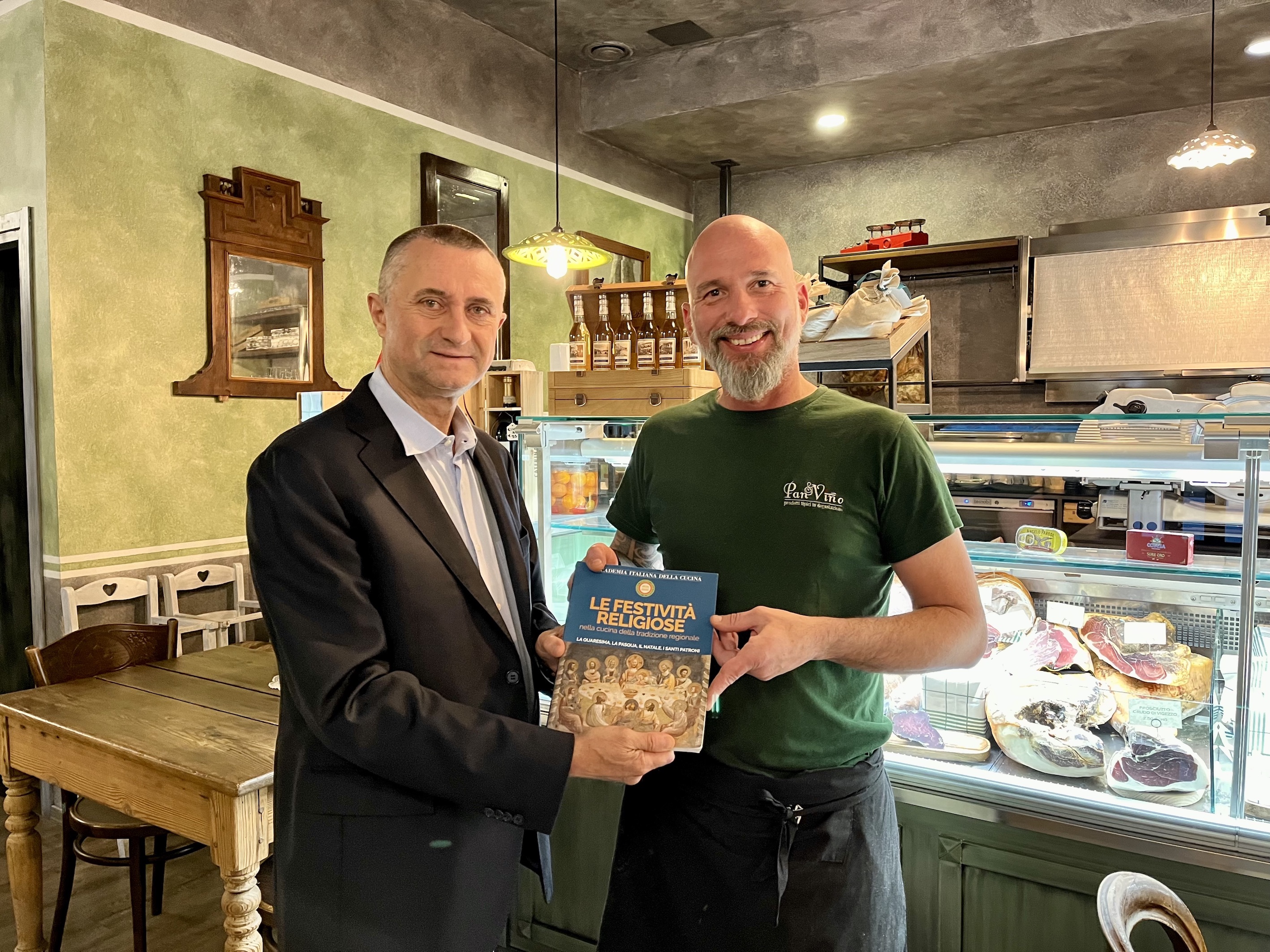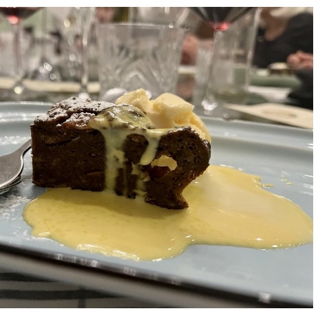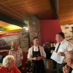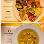 Appuntamento al ristorante “Pane & vino” nella centralissima piazza Cavour di Domodossola per gli Accademici della Val d’Ossola. Il ristorante propone un‘offerta ricca di prodotti tipici della cultura gastronomica del territorio, in un ambiente rustico ma al contempo accogliente e ben curato; ciò ha permesso agli Accademici di passare una serata gradevole, in un ambiente ospitale e piacevole (foto 1). L’organizzazione della serata è stata curata dal Delegato Paolo Rossi con lo chef Maurizio Pozzoli (foto 2). Il Delegato ha accolto i presenti illustrando le attività accademiche future e relazionando sulla partecipazione a diverse riunioni conviviali dell’area Piemonte est e all’Assemblea dei Delegati svoltasi recentemente a Baveno. Il menu, tipicamente piemontese, con antipasti (foto 3 vitello tonnato; insalata russa, battuta di fassona piemontese), tonno di coniglio, e ancora peperoni in bagna cauda e lingua in salsa verde. Il piatto principale, la rinomata panissa vercellese, che racchiude tutti i sapori della tradizione contadina piemontese: riso, fagioli freschi e salame. Per concludere, la torta pane latte e gelato alla vaniglia (foto 4). Al termine della serata, gli Accademici si sono intrattenuti a lungo a chiacchierare, sorseggiando il liquore di genziana della casa. Cortese e disponibile il personale, nonostante le ore piccole.