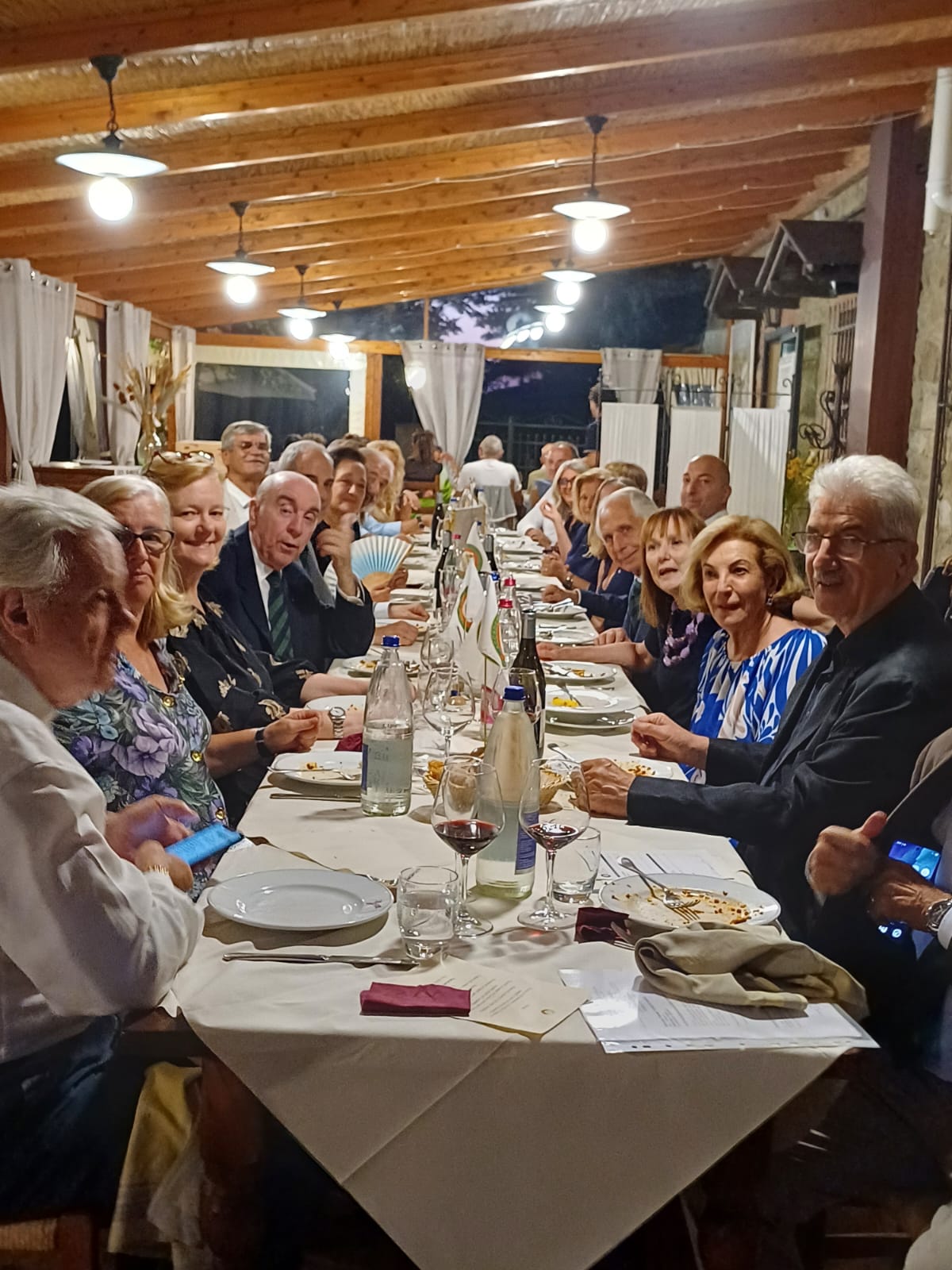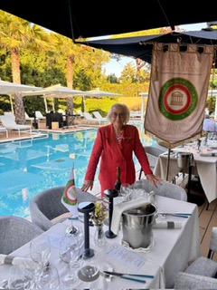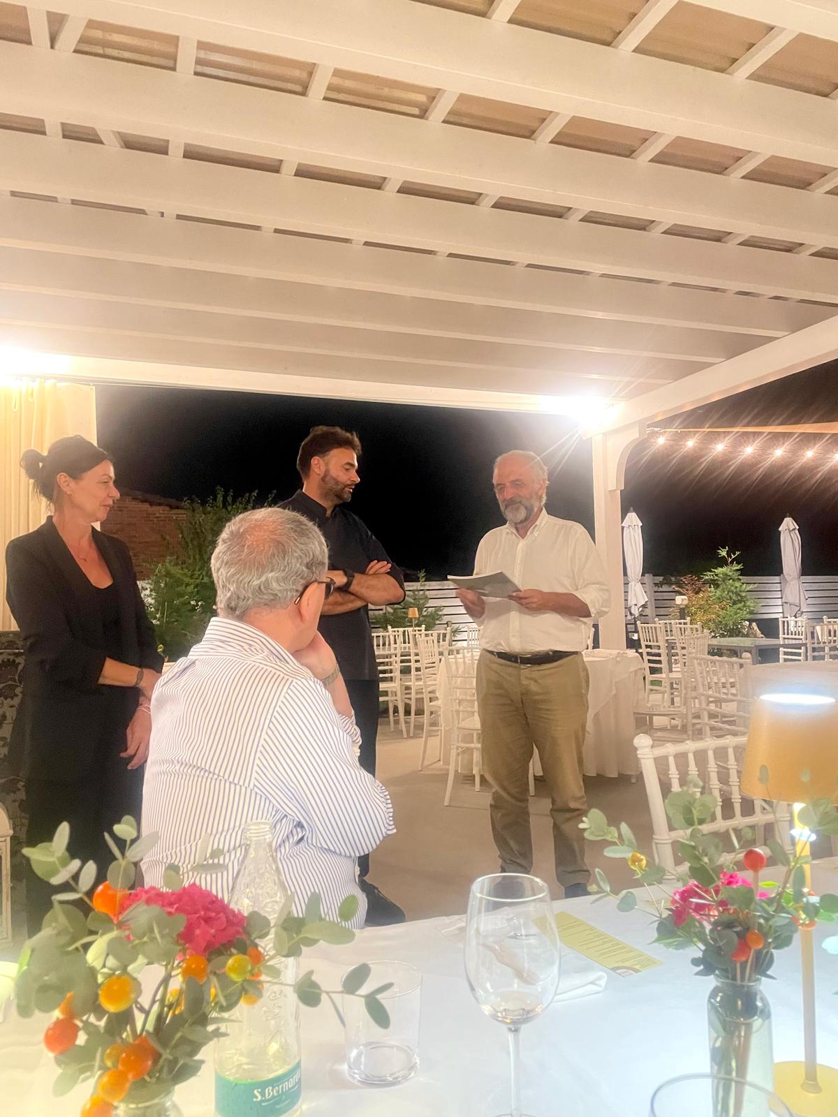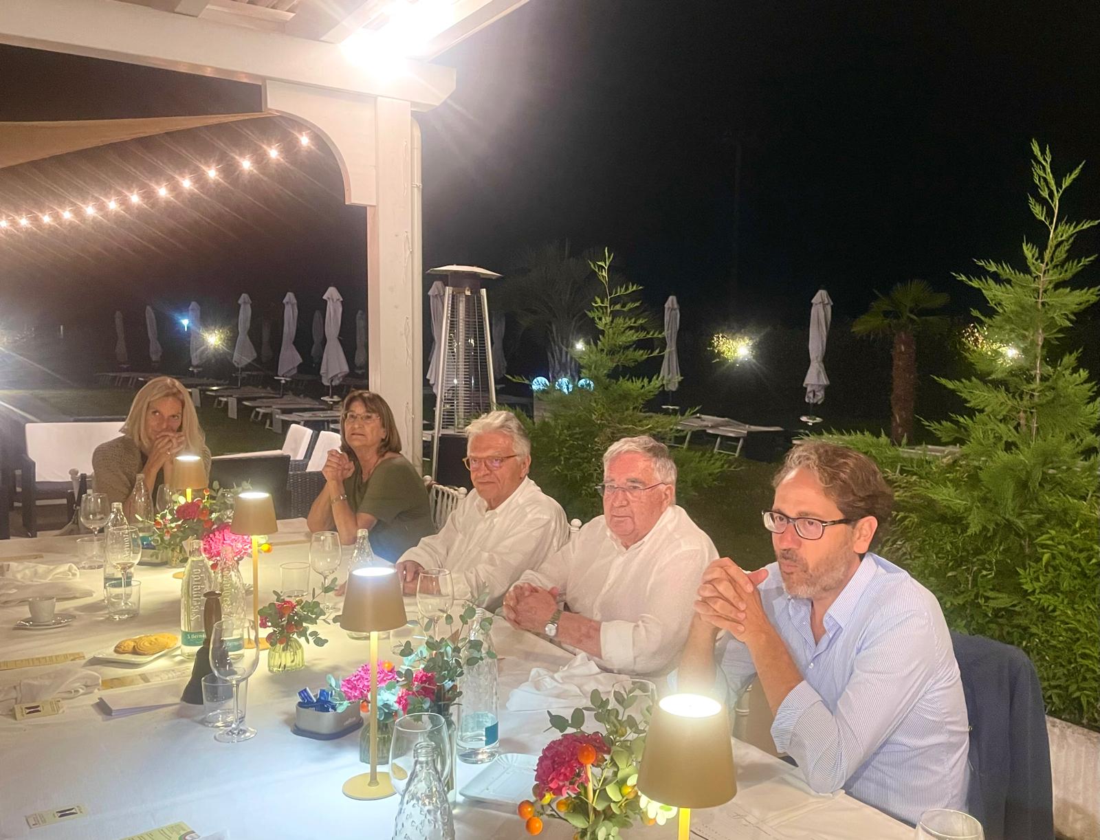 Presso il ristorante “Il Cristallo”, all’interno del Resort Miramonti di Forte dei Marmi, nella quiete della prestigiosa zona di Roma Imperiale, si è svolta la riunione conviviale di luglio. Accademici e ospiti sono stati accolti in una suggestiva location con tavoli a bordo piscina e accompagnamento di musica leggera dal vivo. Dopo i saluti iniziali, la Delegata Anna Ricci ha conferito il distintivo al nuovo Accademico Augusto Neri, che, emozionato, ha ringraziato e ricevuto il materiale associativo. Il menù, semplice ma curato, ha proposto piatti equilibrati anche nel gusto. L’antipasto ha valorizzato l’ottimo crudo di pesce proposto nel locale, con tartare di dentice, seguito da un risotto arricchito da sashimi di mazzancolle. Il secondo piatto ha introdotto un tocco fusion: baccalà con sesamo e kimchi coreano, dal piacevole sentore speziato. In chiusura, il dessert “lingotto caramellato salato” ha conquistato i presenti per cremosità e raffinatezza, completando un menù delicato e ben costruito. A fine serata, la Delegata, prima di salutare i presenti, ha chiamato la brigata di cucina con lo chef Giuseppe De Rang e la maître Deborah Morelli, ringraziandoli vivamente della gradevole accoglienza ricevuta.