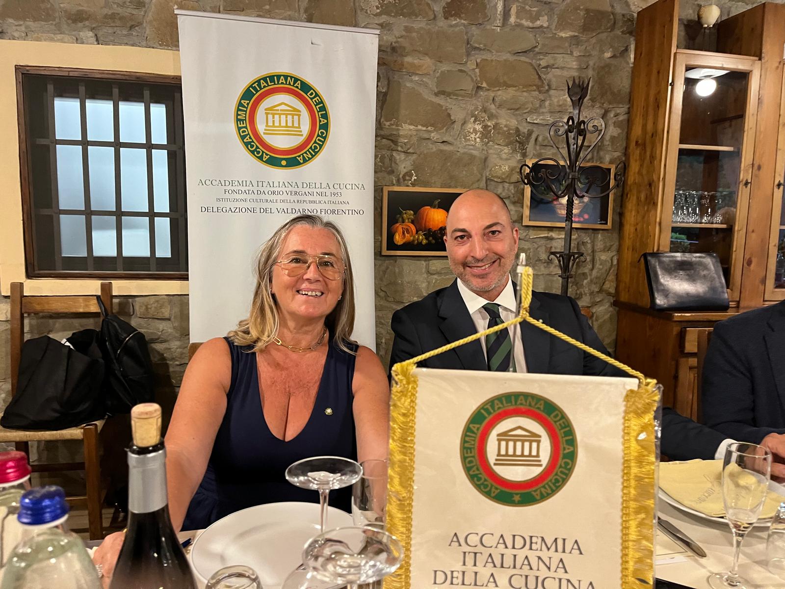 La cena conviviale del Valdarno Fiorentino si è tenuta al ristorante Giacomo nella fresca località di Vallombrosa. Scappati dalla temperatura rovente della città, la Delegazione ha trovato refrigerio e potuto così gustare ottime portate, dal gusto casalingo, nel ristorante storico Giacomo. Il Simposiarca Christian Pigionanti ha parlato dell'importanza del ristorante sul territorio di Vallombrosa, della peculiarità dei prodotti utilizzati per la preparazione dei piatti e ha illustrato le pietanze, in particolare i tortelli di patate di Cetica al ragù bianco di maiale grigio del Casentino. Come sempre un'atmosfera gioiosa ha accolto gli Accademici e i numerosi ospiti della serata. A fine serata la brigata di cucina ha ricevuto i complimenti dei commensali e il piatto commemorativo dall'Accademia.