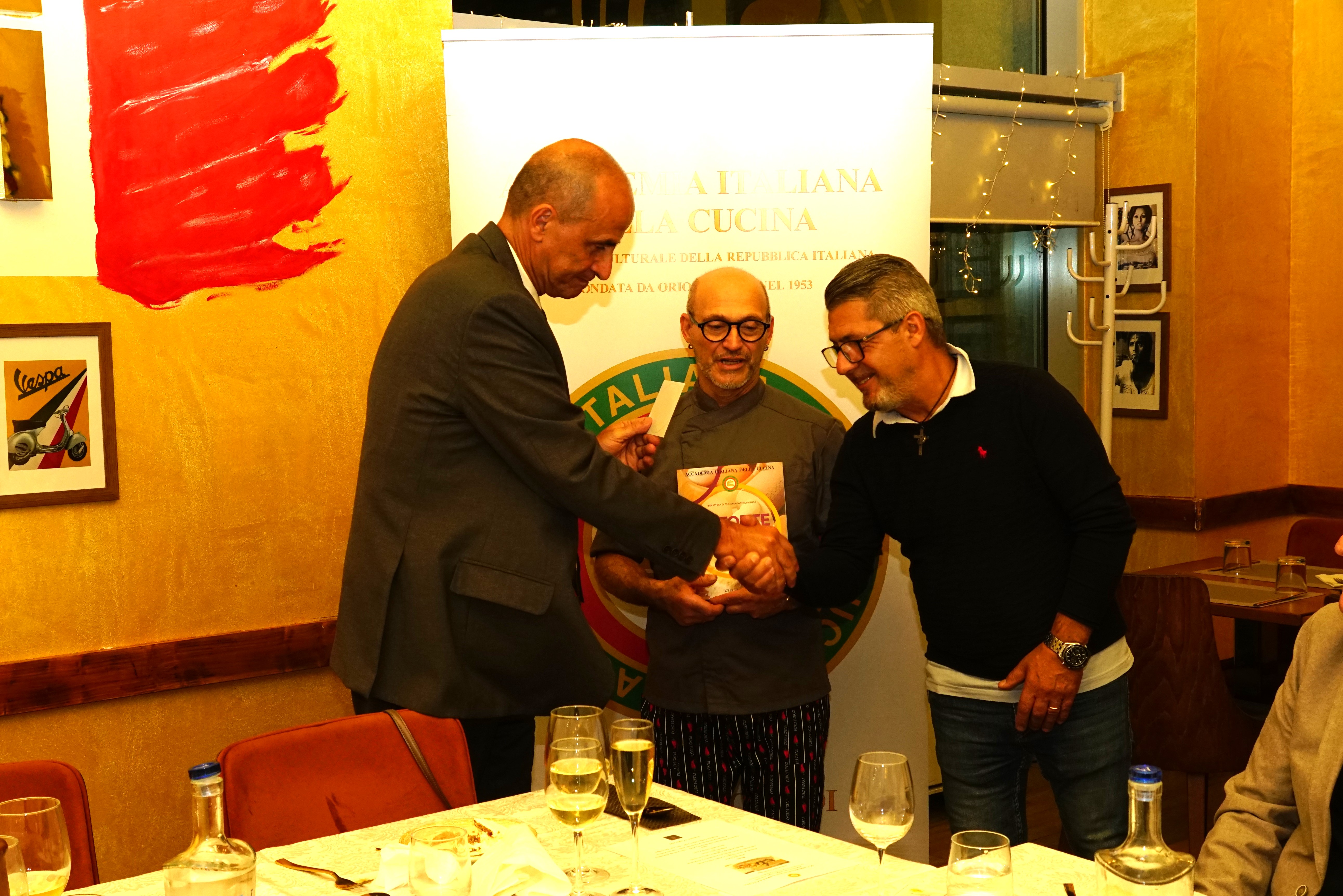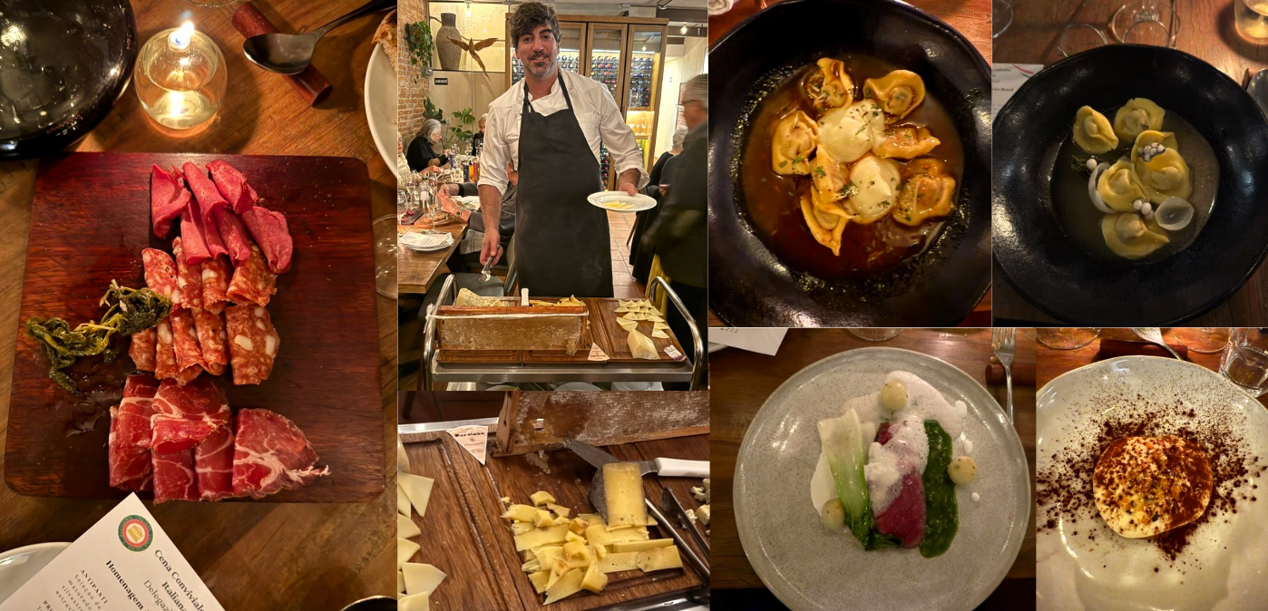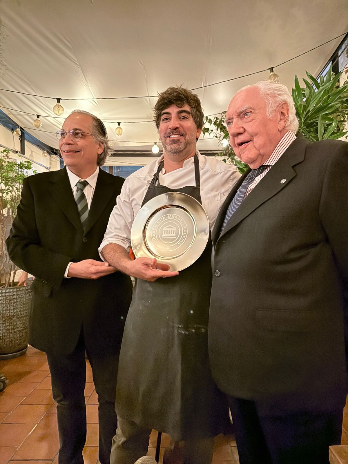In un'atmosfera rilassata, si sono riunite 32 persone, tra cui soci dell'Accademia e ospiti che presto lo diventeranno. Lo chef del PIÙRESTAURANTE, Marcelo Laskani, ha preparato un menù unico, ispirato alla cucina italiana ma costruito con ingredienti brasiliani. I formaggi brasiliani pluripremiati e le salsicce artigianali di alta qualità hanno aperto la serata, offrendo un assaggio autentico del territorio. I tortellini ripieni di anatra confit, immersi in un brodo di tucupi con un delicato sentore di jambu, hanno stupito per equilibrio e profondità. La bistecca di controfiletto, cotta alla griglia, con stracciatella fresca e bietola in crema. Il dessert ha chiuso in bellezza: una versione brasiliana del tiramisù, arricchita da cachaça invecchiata in botti di Umburana. Nel corso della serata è stato consegnato il materiale associativo ai nuovi membri dell'Accademia.