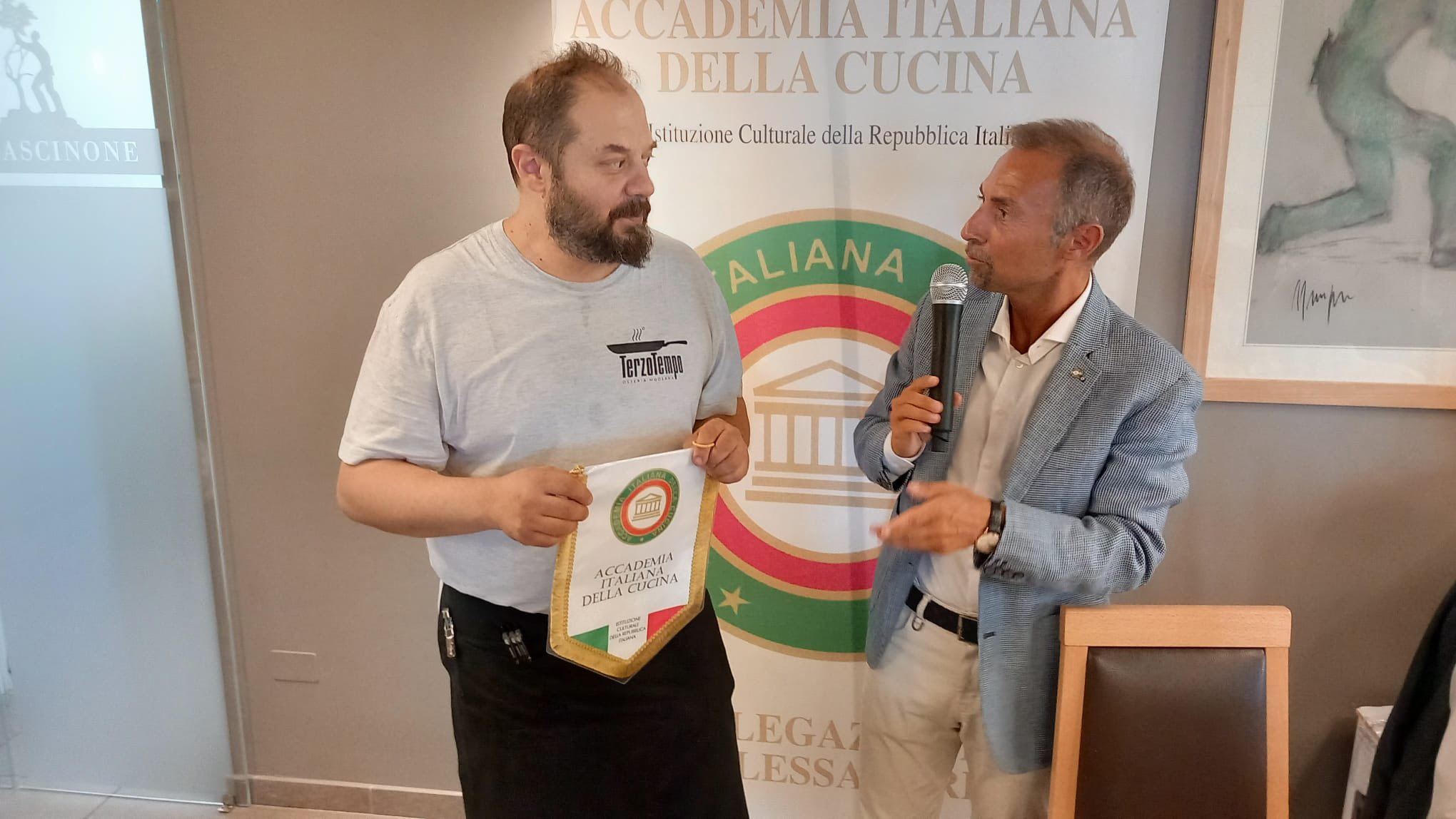 Ultima riunione conviviale prima della pausa estiva per gli Accademici alessandrini, riuniti al ristorante “Terzo tempo Osteria Moderna”, sulle colline Acquesi, per gustare un menù ispirato alla tradizione e alla stagionalità. Il convivio è stato impreziosito dalla grafica del menù curata dal Vice Delegato Adriano Benzi e da Rosalba Dolermo. Il Delegato Matteo Pastorino ha guidato i presenti in un affascinante viaggio al cuore del carpione piemontese, marinatura nata nelle campagne per conservare il pesce d'acqua dolce – in particolare carpe e tinche – prima dell’avvento del frigorifero. Già nota nel Medioevo, e forse persino in epoca romana, prevedeva l’uso di aceto, cipolle, salvia e olio, sia per la conservazione sia per attenuare il gusto di fango. Dalle Langhe, il carpione si è poi diffuso nelle cucine borghesi torinesi, fino a divenire piatto estivo tipico degli anni ’60 e ’70. Si è sottolineato, infine, come questo patrimonio gastronomico sia approdato oggi sulle tavole moderne: presente non solo nelle osterie tradizionali, ma persino in rinomati ristoranti. Dall’antica esigenza di conservazione, il carpione si conferma oggi simbolo di autenticità, continuità culturale e sperimentazione culinaria.
