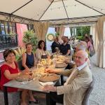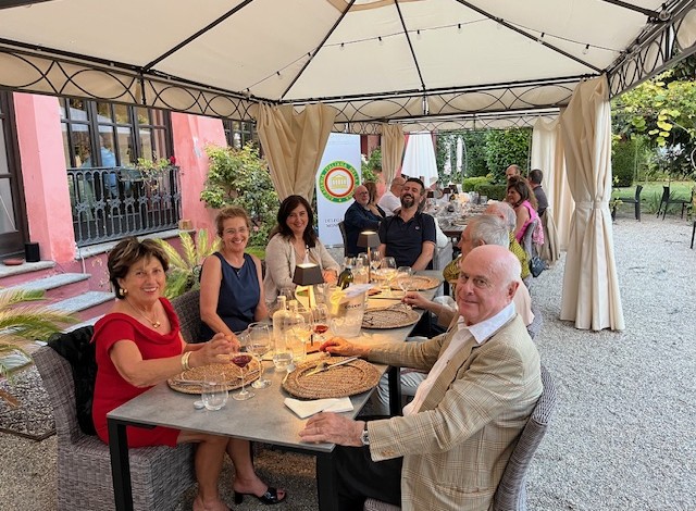 La Delegazione del Monferrato si è riunita per la riunione conviviale sulle colline di Rosignano Monferrato. Fra vigne gravide di grappoli e gialli campi di grano mietuto, il Country Resort “I Castagnoni” ha accolto con discrezione i partecipanti. Si tratta di una dimora settecentesca di impianto conventuale e successivamente casa padronale. Il perfetto giardino all’italiana, con bossi e rose, custodisce i vari fabbricati, tra cui una cappella del Settecento dedicata a Nostra Signora dell’Annunciata. Il fresco della valle ha garantito la piacevolezza dell’aperitivo e della cena in giardino, durante i quali sono stati serviti focacce e salumi monferrini, vitello tonnato, insalata di farro, insalata russa, torte salate di verdure e, in ultimo, un flan di asparagi con fonduta guarnito di tartufo scorzone nero. A seguire, gli ospiti hanno gustato agnolotti con sugo di arrosto e un delizioso dolce al bicchiere di crema gelata. I vini serviti, a partire dallo spumante, sono stati quelli di produzione della tenuta e, tra questi, si sono degustati Grignolino, Barbera d’Asti e Chardonnay. Tra gli ospiti aspiranti Accademici, il dott. Emanuele Rendo, noto giovane agronomo, ha fornito interessantissimi spunti sui prodotti delle colline del Monferrato e ha narrato alcuni simpatici aneddoti della tradizione rurale.