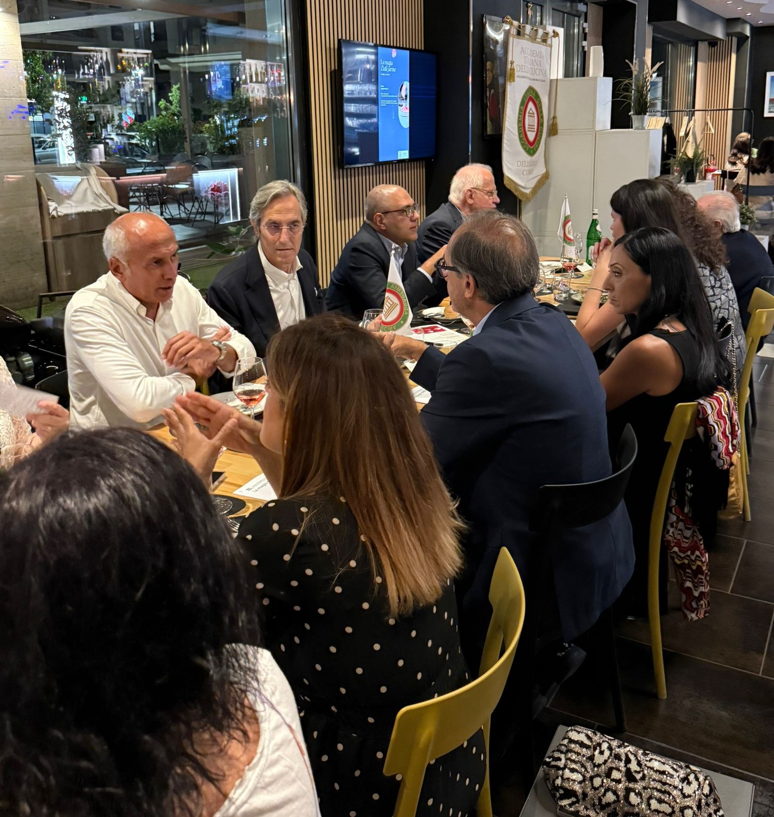 Presso il ristorante Casa Bella, situato nella Marina di Herzliya Pituach e aperto da circa un anno, si è svolta la riunione conviviale d’estate della Delegazione di Tel Aviv. Il tema del simposio, “Il pesce nella cucina italiana”, è stato trattato dagli Accademici Roberto Della Rocca e Nessia Laniado, in linea con il menù proposto dal ristorante, incentrato sul pesce. Nel corso della serata, la nuova Accademica Michal Krauss Cohen ha ricevuto l'attestato e il materiale associativo dalla Delegata Cinzia Klein, presentandosi ufficialmente alla Delegazione. L’incontro ha rappresentato un momento di piacevole ritrovo dopo un periodo complesso, con la partecipazione del Console di Tel Aviv Federico Castelli accompagnato dalla diplomatica Raffaella Di Chiano, del Colonnello Andrea Mazzotta con la consorte Tonia, del Colonnello dell’Aeronautica Gianluigi Attingenti, insieme a numerosi Accademici e personalità della vita sociale di Tel Aviv.