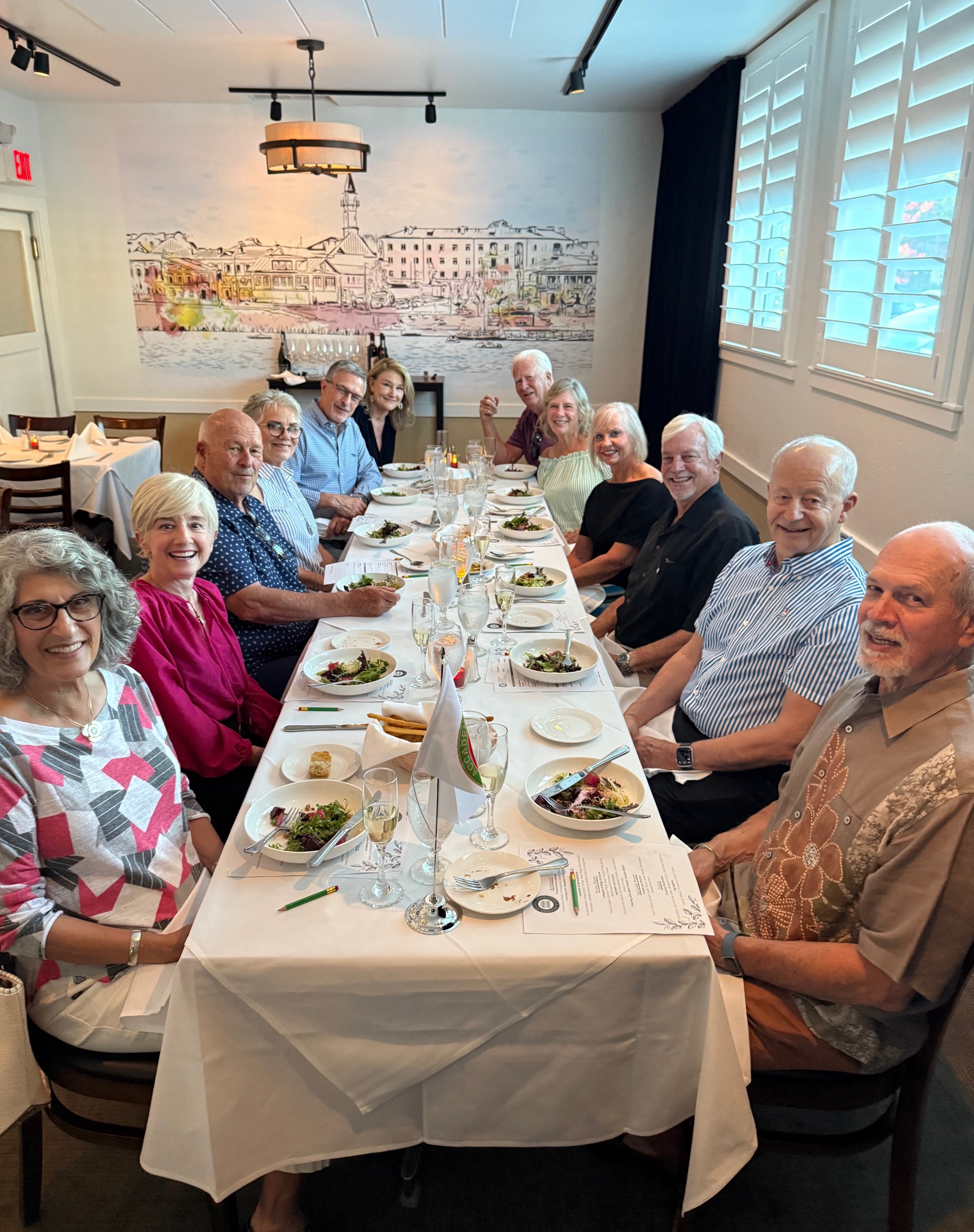 La Legazione di Sacramento ha tenuto la riunione conviviale di agosto da Mattone, ristorante aperto da June Chang con chef e staff di Biba, storico locale chiuso dopo la scomparsa del fondatore. L’eccellenza dei piatti dello chef Karel Mulac e della pastaia e pasticcera Penny Sheridan ha onorato l’eredità di Biba. La cena è iniziata con prosciutto, melone, gelato al Parmigiano, crema balsamica e prosecco: il gelato, preparato con scaglie di Parmigiano e panna, ha aggiunto una nota sorprendente, rendendo l'antipasto memorabile. Protagonista assoluta la Lasagna al Ragù: dodici strati di pasta finissima agli spinaci con autentico ragù alla bolognese, perfettamente equilibrata e abbinata al Chianti Classico DOCG Banfi. Penny Sheridan ha chiaramente riversato amore e cura nella pasta realizzata, straordinariamente sottile e leggera, cotta alla perfezione. A seguire, vitello alla piccata con salsa al limone, capperi e panna: elegante e armonioso, lasciava emergere il sapore delicato della carne. Gran finale con lo Zuccotto Fiorentino con alcune varianti: guscio sottile di cioccolato, cuore di plumcake al rum, crema di nocciole e mandorle, servito con uno Sgroppino al limone e vodka al cedro. Il livello di maestria culinaria è stato l'argomento di conversazione, con numerose discussioni sull'unicità dei piatti e l'apprezzamento della difficoltà di crearli con risultati così incredibili. Una cena raffinata, memorabile per tecnica, creatività e gusto.