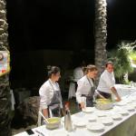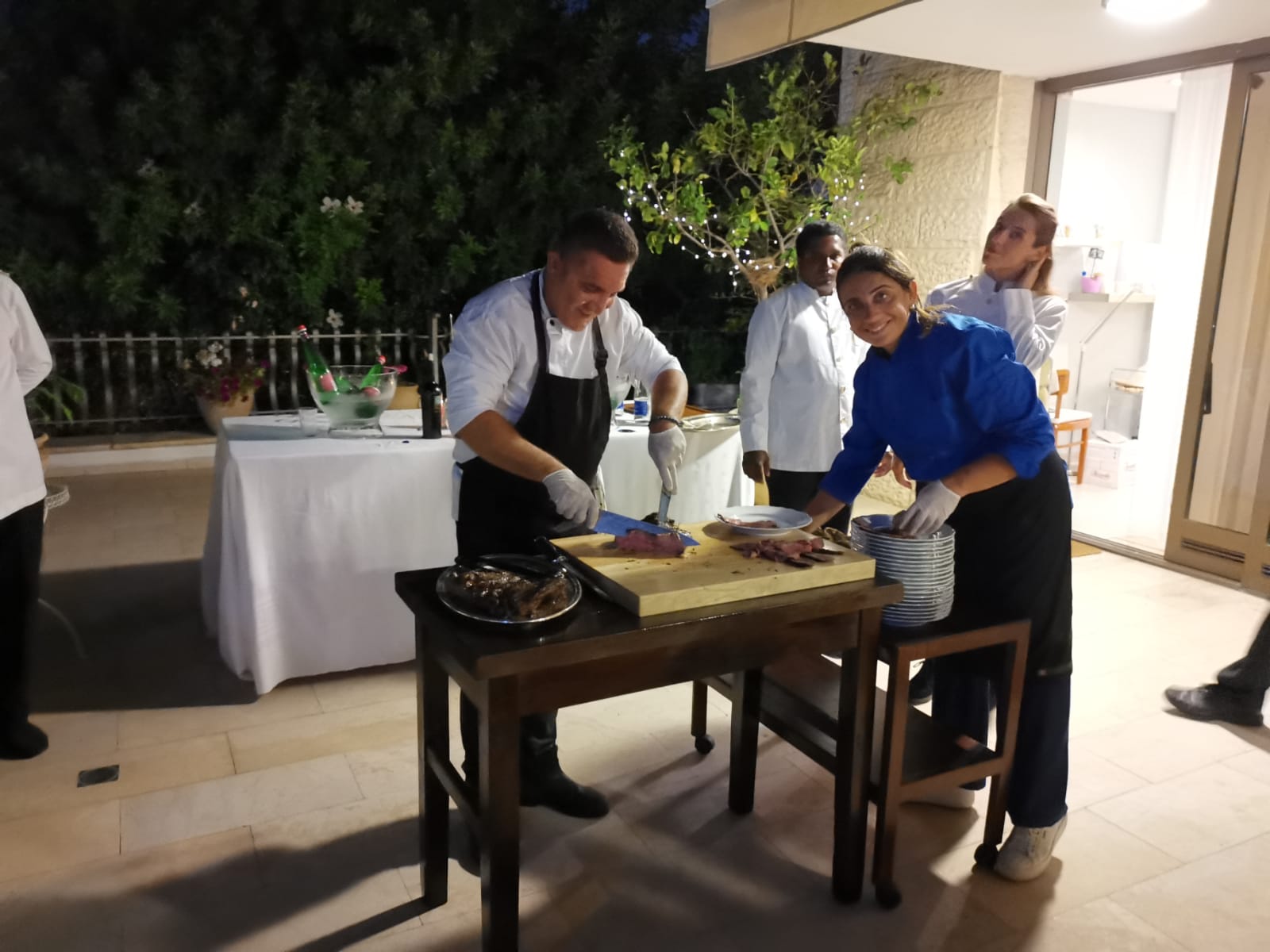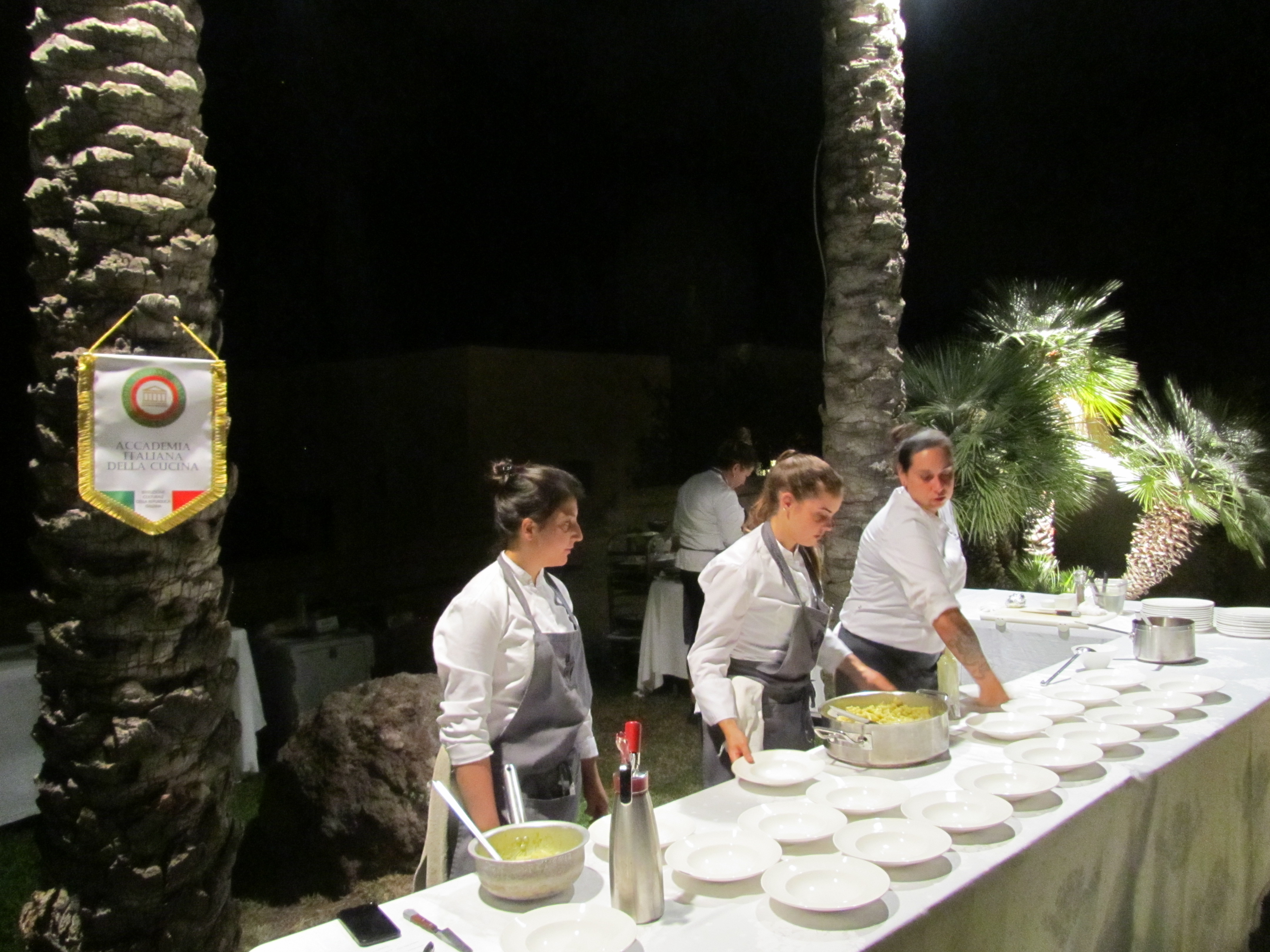 La Delegazione di Messina si è riunita al Signum di Malfa, nell’Isola di Salina, per la consegna del Diploma di Cucina Eccellente 2019 a Martina Caruso che ha preparato un menu degustazione tagliato su misura per gli Accademici messinesi. Foto 1. Il tavolo imperiale predisposto in giardino con barbecue a vista. Foto 2. Martina Caruso con il suo staff. Foto 3. Il Delegato Francesco Trimarchi consegna il Diploma di Cucina Eccellente a Martina Caruso. Foto 4. Spatola panata al barbecue con mandorle e il peruviano “Leche de Tigre” (lime, peperoncino e zenzero).