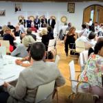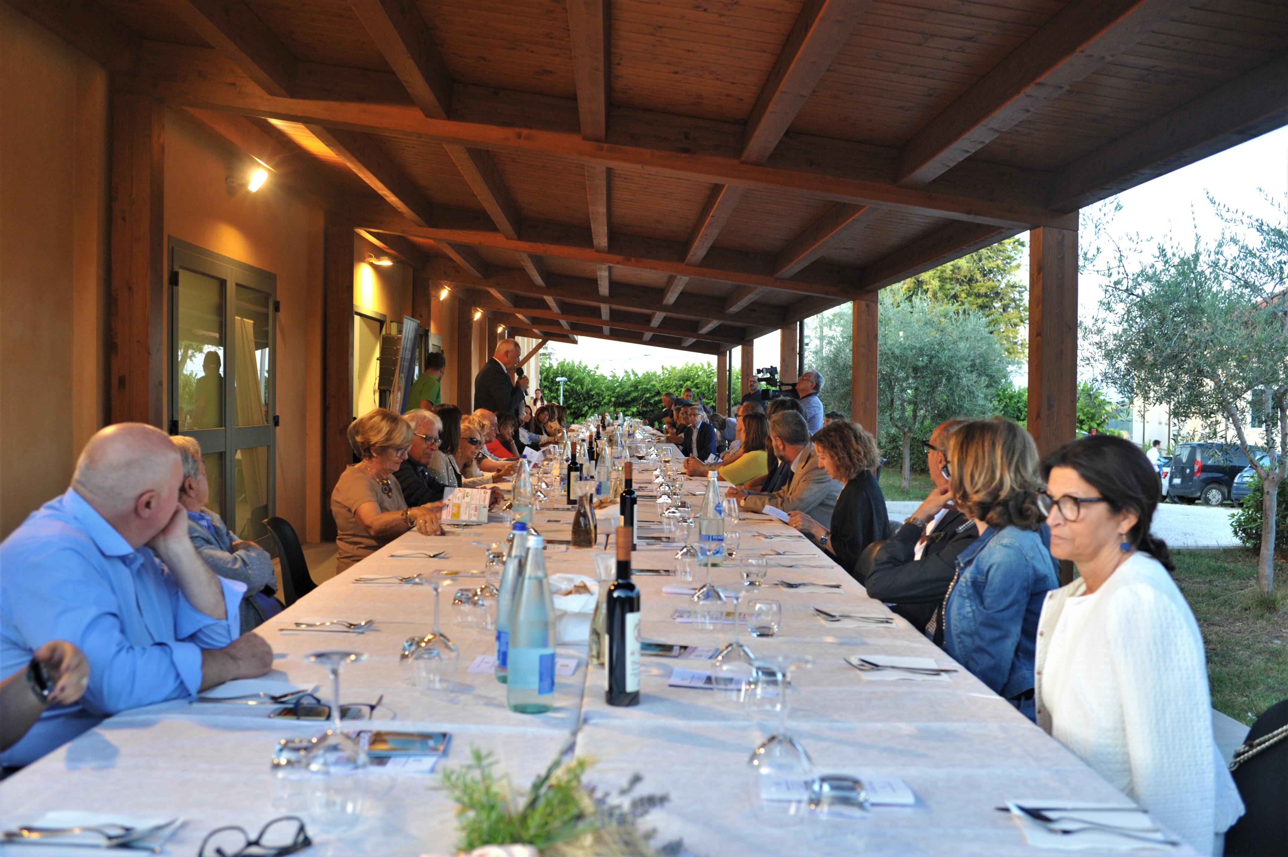La Delegazione di Fermo, con il patrocinio del Comune di Ortezzano, ha organizzato un evento incentrato sul "Pranzo delle otto portate: gli albori del catering". L'iniziativa si è sviluppata in due momenti: un convegno sul tema e una successiva ruinione conviviale in cui il cuoco Giampiero Giammarini del ristorante "I Piceni" ha riproposto filologicamente tutto il pranzo. Foto 1. A sinistra il Delegato Fabio Torresi e il tavolo dei relatori: prof. Tommaso Lucchetti, prof.ssa Guglielmina Rogante, prof. Carlo Verducci, prof. Luigi Rossi. Tra i relatori anche il prof. Giocondo Rongoni non presente nella foto. Foto 2 e 3. Il momento conviviale. Durante il servizio si sono esibite nel tradizionale "saltarello" due coppie in abiti tradizionali accompagnate da un suonatore di organetto e una voce solista ha riproposto i canti dei grandi lavori delle campagne (nella foto 4 con il Delegato Torresi).