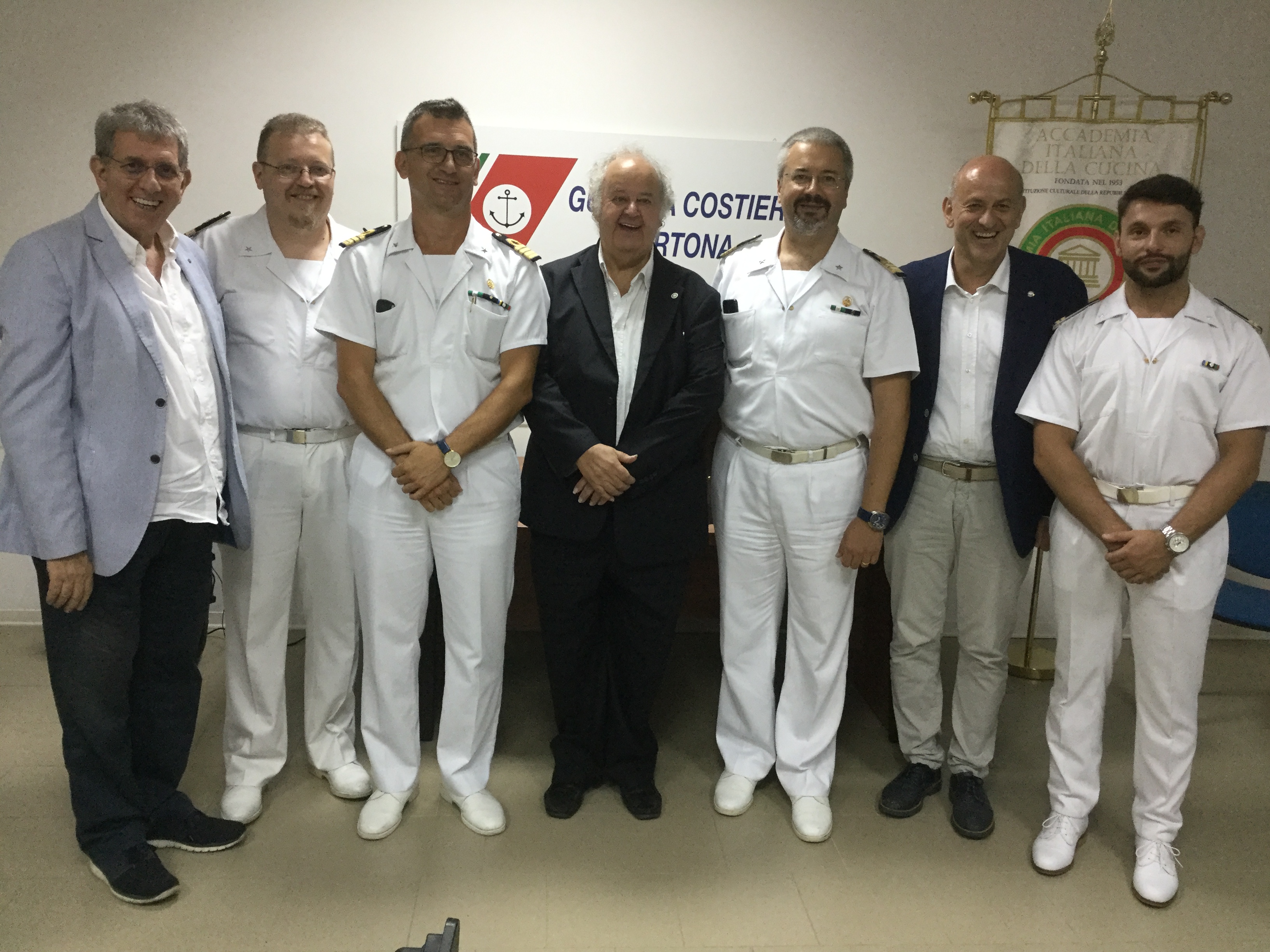 Si è tenuto il 15 agosto scorso il convegno organizzato dalla Delegazione di Chieti dal titolo “Pesce dell'Adriatico: il ruolo della Guardia Costiera nella tutela della pesca” presso la sala conferenze della Capitaneria di Porto di Ortona. Relatore, il Delegato onorario di Pesaro-Urbino Corrado Piccinetti, biologo marino, che ha sintetizzato la situazione del comparto ittico nel nostro Paese, con particolare riferimento al comparto adriatico. In foto. A sinistra il Delegato onorario di Chieti e Consigliere di Presidenza Mimmo D'Alessio, al centro Corrado Piccinetti con alla sua sinistra il comandante del Compartimento Marittimo di Ortona Giuseppe Marzano e il Delegato di Chieti Nicola D'Auria.