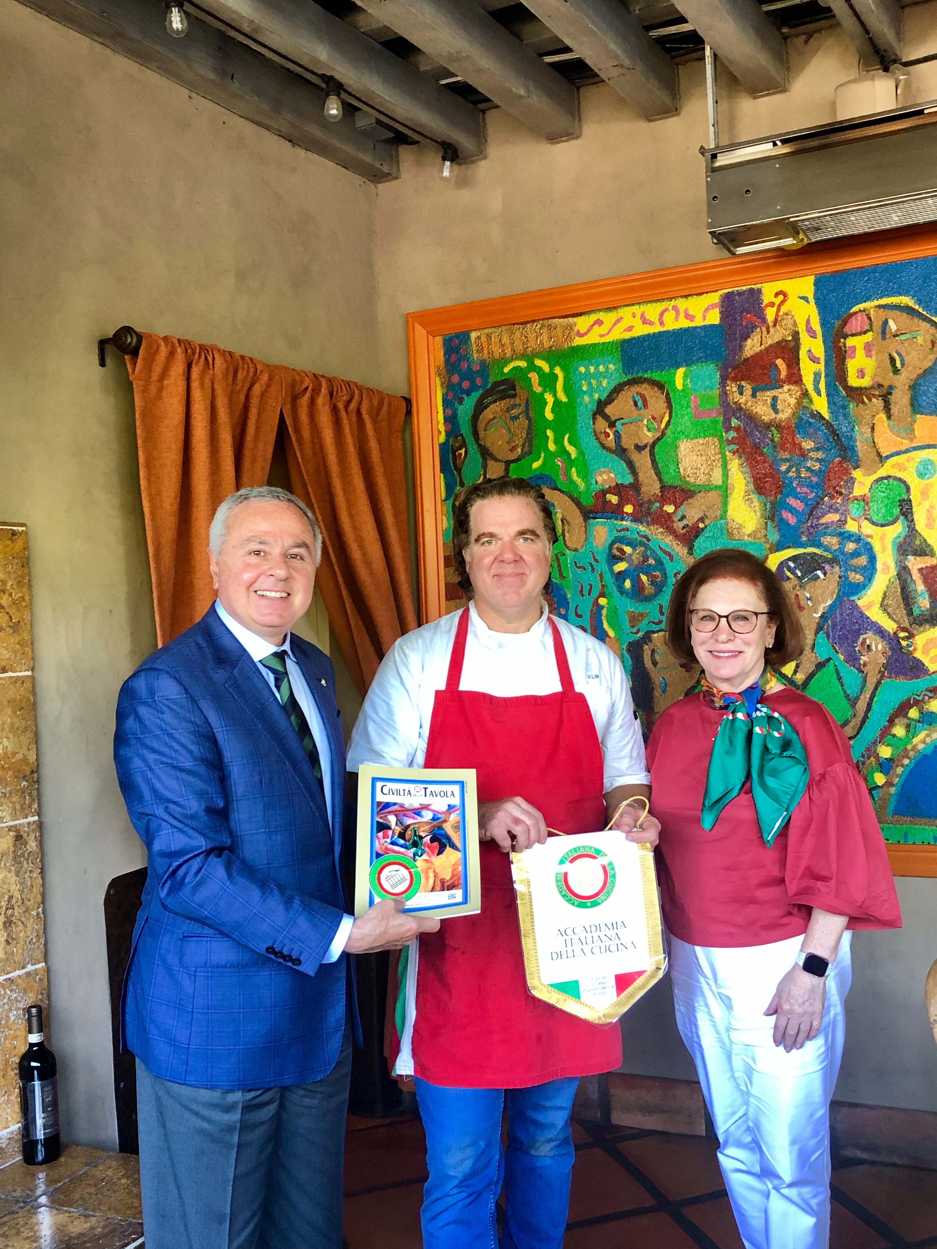 La Delegazione di San Francisco ha visitato il Bistro Don Giovanni a Napa per la riunione conviviale estiva. In foto 1. Il neo Accademico Richard Cuneo tra la Moglie Mary Ann e il Delegato Claudio Tarchi. Foto 2. La neo Accademica, Annamaria Di Giorgio, Direttrice dell’Istituto Italiano di Cultura e il Delegato Claudio Tarchi. Foto 3. Il Delegato presenta una copia della Rivista, la vetrofania e il guidoncino allo Chef Scott Werner; a destra la Simposiarca dell’evento Romana Bracco. Foto 4. La sala riservata agli accademici per il pranzo.