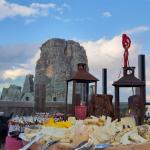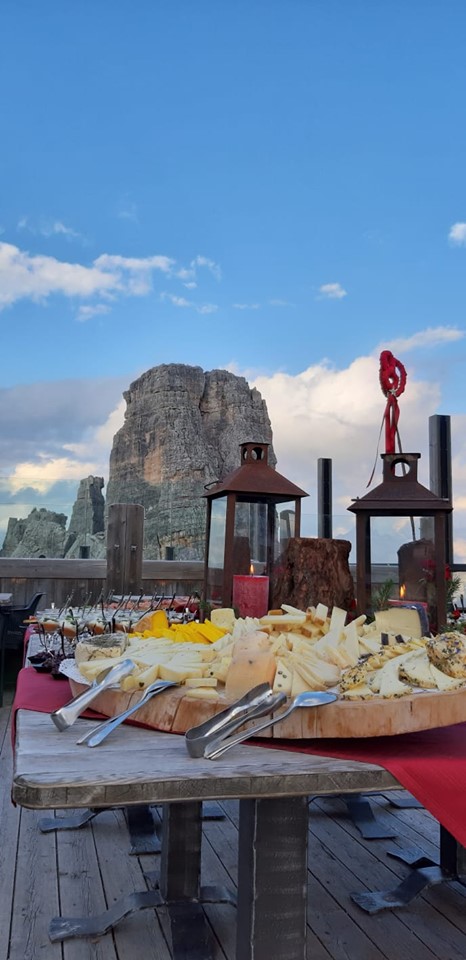 La Delegazione di Cortina d’Ampezzo si è ritrovata per festeggiare l’ottantesimo compleanno del gruppo alpinistico Scoiattoli di Cortina presso il Rifugio Scoiattoli ai piedi delle 5 Torri. Una splendida serata che ha riunito anche Delegati e Accademici di altre Delegazioni e che ha visto sfidarsi alpinismo e gastronomia in uno dei luoghi più magici delle Dolomiti. In foto 1. La Delegata Monica De Mattia (a destra nella foto), insieme ai Simposiarchi Antonella Marani e Roberto De Rigo, danno il benvenuto alla Conviviale d'estate al Gruppo Scoiattoli. Foto 2. L'aperitivo con vista sulle 5 Torri. Foto 3. Cotoletta di vitello con l'osso, cappuccio e mirtilli rossi. Foto 4. Tiramisù a forma di Scoiattolo.
