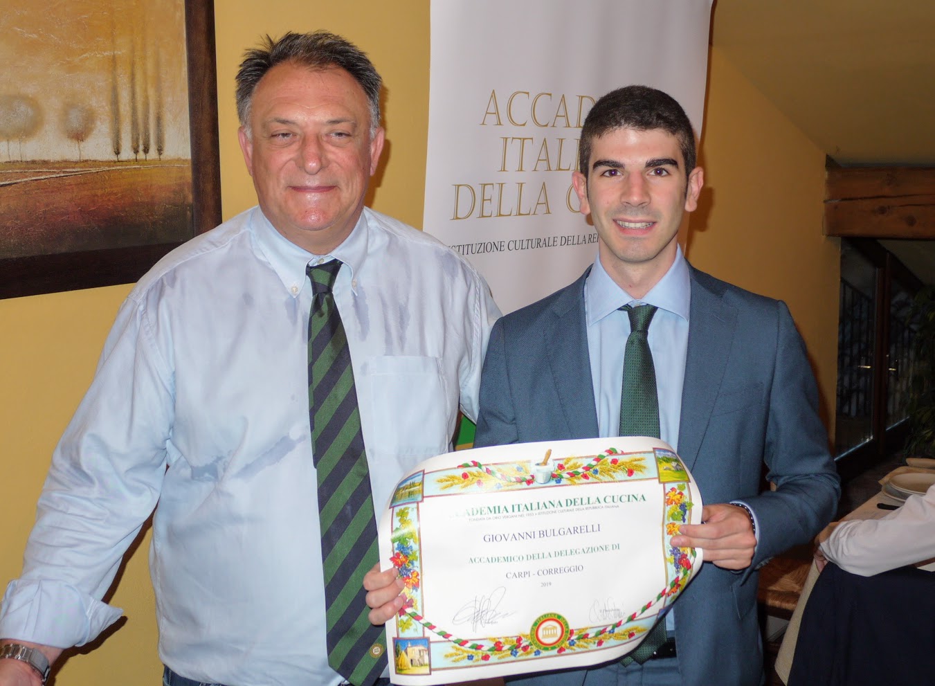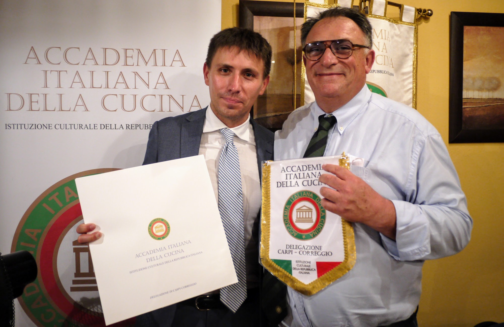Le Delegazioni di Carpi-Correggio e Terre Modenesi hanno organizzato una riunione conviviale congiunta all'agriturismo "L'Oca Bigia" di Soliera (MO). Il relatore della serata Ing. Matteo Marchetti, esperto di settore, ha relazionato sul tema "Le carni rosse e bianche: evoluzione e prospettive in Europa, esperienza operativa" (a sinistra nella foto 1 con il Delegato di Carpi-Correggio Pier Paolo Veroni). Foto 2. Il Delegato Pier Paolo Veroni, la titolare dell'agriturismo Oca Bigia Elisabetta Castagnetti e la Delegata di Terre Modenesi Rosalba Caffo Dallari. Foto 3. Consegna dell'attestato di appartenenza al neo Accademico Giovanni Bulgarelli. Foto 4. A sinistra, l'Accademico di Castel San Pietro-Medicina Stefano Zanetti e il Delegato di Bologna San Luca Atos Cavazza.