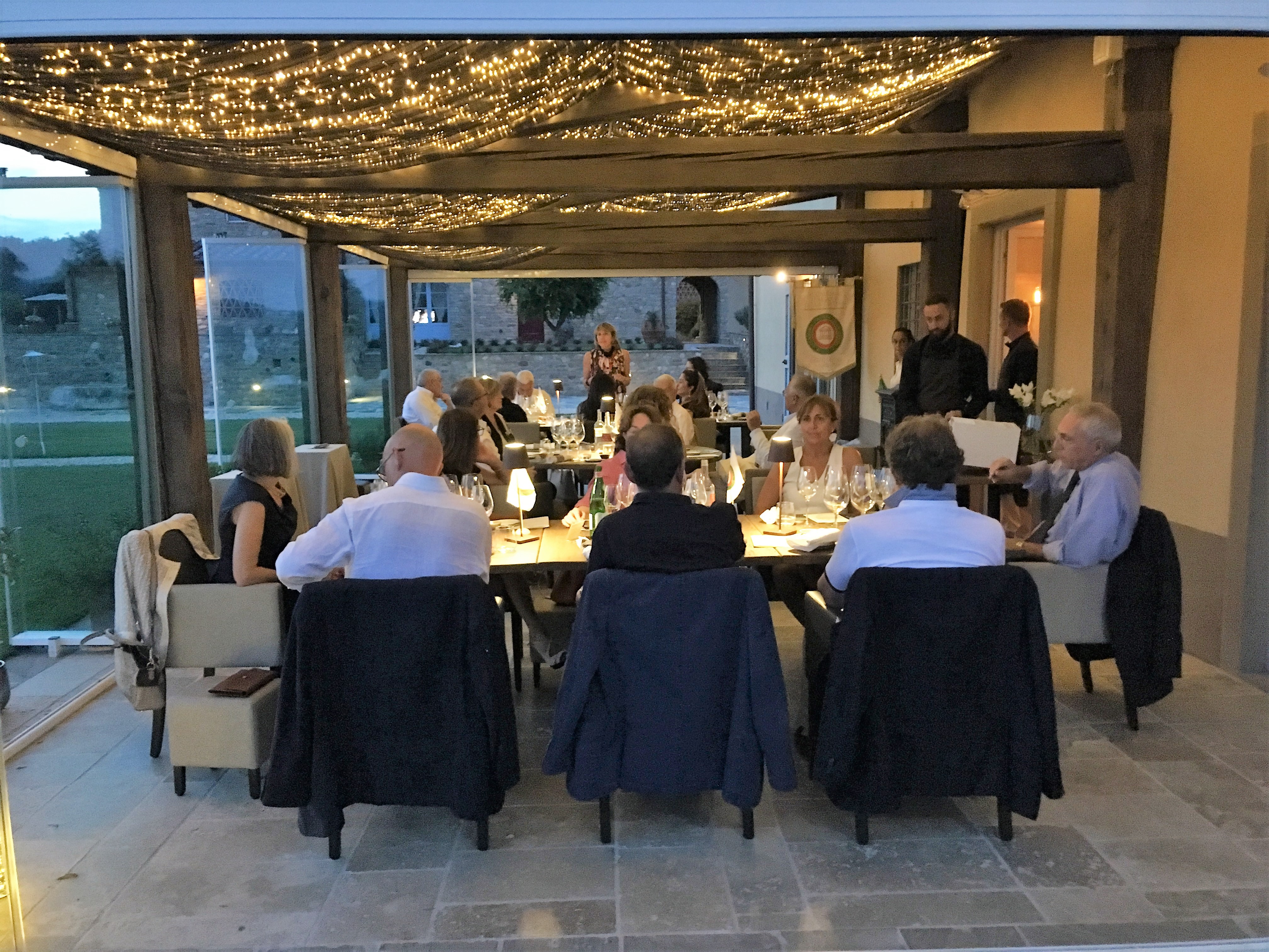Il tradizionale convivio del solstizio d'estate ha visto riunite le cinque Delegazioni del Friuli Venezia Giulia (Gorizia, Muggia-Capodistria, Pordenone, Trieste e Udine) presso le Cantine Jermann di Ruttars (GO). Dopo la visita alle cantine, gli Accademici si sono ritrovati per il momento conviviale (foto 1 e 2). Foto 3 (da sinistra). Il Delegato di Pordenone Stefano Zanolin, l'Accademica di Muggia-Capodistria in rappresentanza del Delegato, il Delegato di Udine e CT Massimo Percotto e il Delegato di Trieste Paolo Penso. Foto 4. Omaggio delle Delegazioni a Felix Jermann.