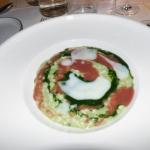 La Delegazione di Novara ha visitato il ristorante "Cucina della Darbia" aperto recentemente in un Residence di charme sul Lago d’Orta, Località Vacciago (Ameno). Foto 1. Il cuoco Matteo Monfrinotti e il maître Davide Pastrello con al centro il Delegato Piero Spaini. Foto 2. Il Delegato con il titolare geom. Primatesta. Foto 3. Risotto ortiche, latticello e cipolla rossa. Foto 4. L'ingresso con orto/giardino.