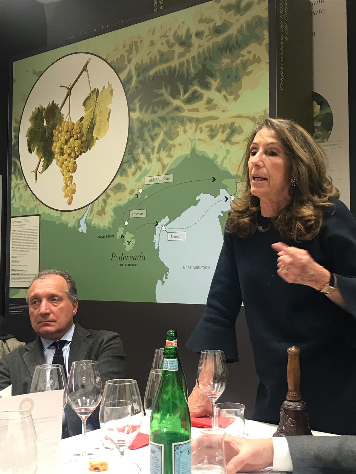 La Delegazione Colli Euganei - Basso Padovano si è riunita presso il Muvi, museo del vino di Vo' Euganeo, per una degustazione guidata dei sette vini tipici del territorio. Foto 1: la sala allestita per la degustazione. Foto 2: la Delegata Susanna Tagliapietra modera il dibattito. Foto 3: il sommelier Vito D'Amanti, relatore della serata. Foto 4: Accademici e ospiti intenti a lezione.