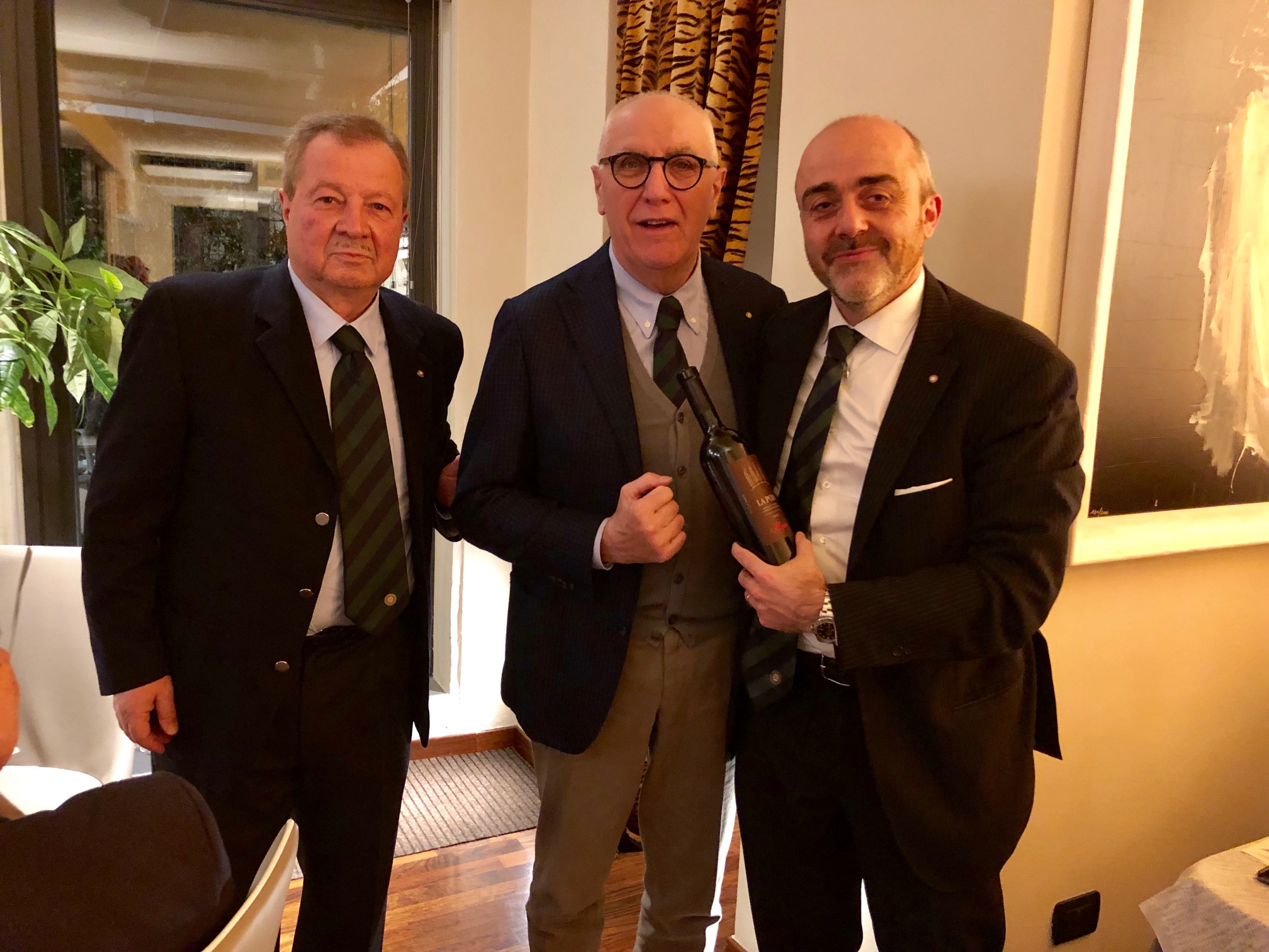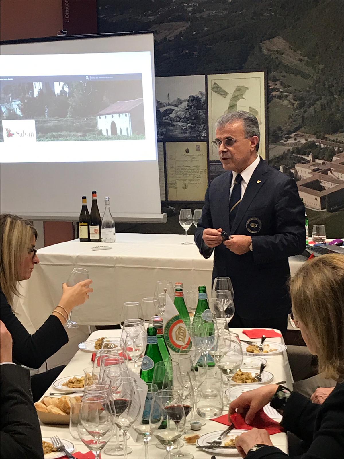 La Delegazione dell'Alto Vicentino si è riunita presso "La Foresteria" (VI) per un momento di convivialità. Foto 1: (al centro) il Delegato dell'Alto Vicentino Renzo Rizzi con il Delegato di Vicenza Raffaele Cavalli (a sinistra), il Coordinatore Territoriale del Veneto Franco Zorzet (a destra) e la signora Tiziana Nogara, titolare con i fratelli Emiliano e Giorgio del Salumificio-Macelleria Nogara (Premio "Dino Villani" 2018). Foto 2: (da sinistra) Raffaele Cavalli, Tiziana Nogara, Renzo Rizzi, Emiliano, Giorgio e Franco Zorzet. Foto 3: il Delegato con il Simposiarca della serata e il cuoco della Foresteria di Casa Zonin 1821.