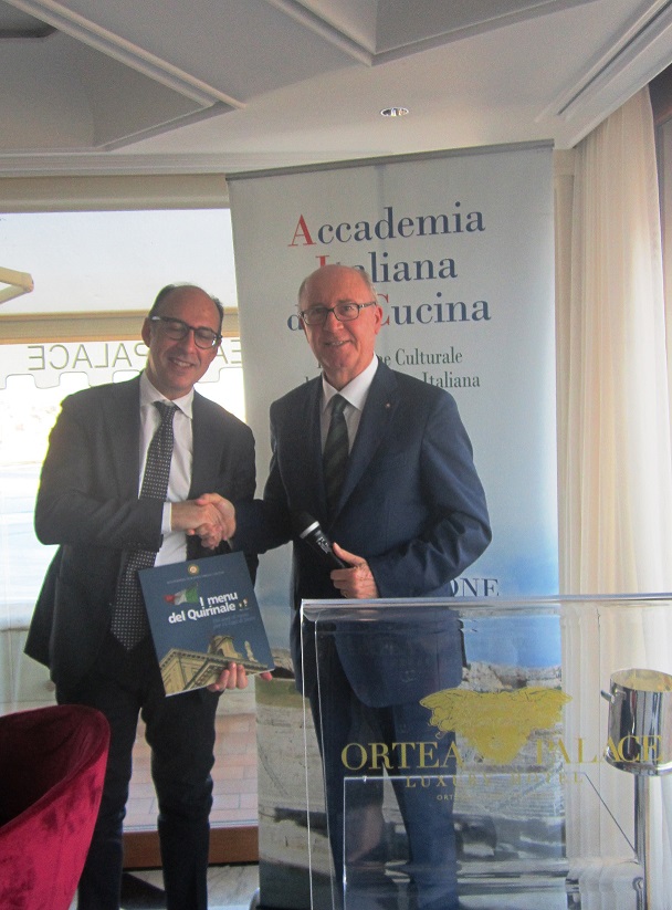 La Delegazione di Messina, alla presenza di S.E. il Prefetto dott.ssa Maria Carmela Librizzi e del Sindaco di Taormina Mario Bolognari ha celebrato la riunione conviviale degli auguri presso "l’Excelsior Palace Hotel" di Taormina. Foto 1: S.E. il Prefetto dott.ssa Maria Carmela Librizzi, il Delegato Francesco Trimarchi. Foto 2: la Vice Delegata Patrizia Marullo, il Delegato Onorario Antonio Barresi e i Delegati di Siracusa Angelo Tamburini, di Ragusa Vittorio Sartorio e il Consultore di Caltagirone Franco Rapisarda, ospiti insieme al CT Sicilia Orientale Ugo Serra e al Delegato di Catania Gian Claudio Tribulato. Foto 4: Il Delegato il Sindaco e il Prefetto con la Direttrice Rosella Castorina Ponte, lo chef Roberto Spitaleri e il Maitre Giovanni Greco.