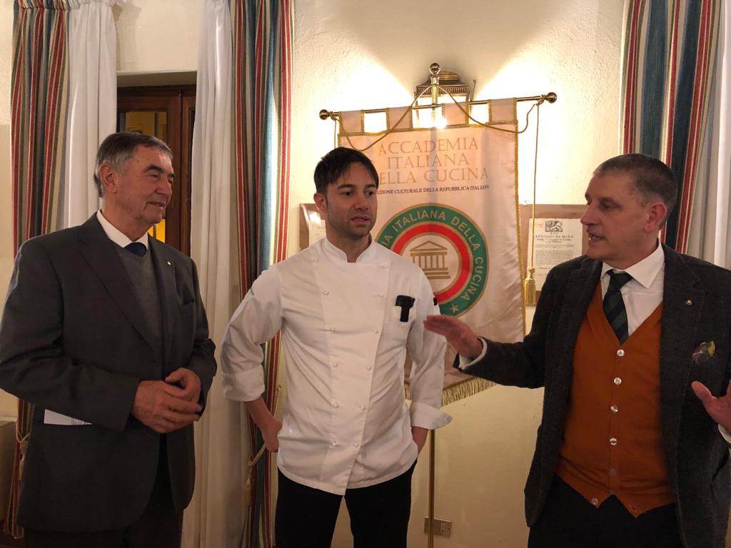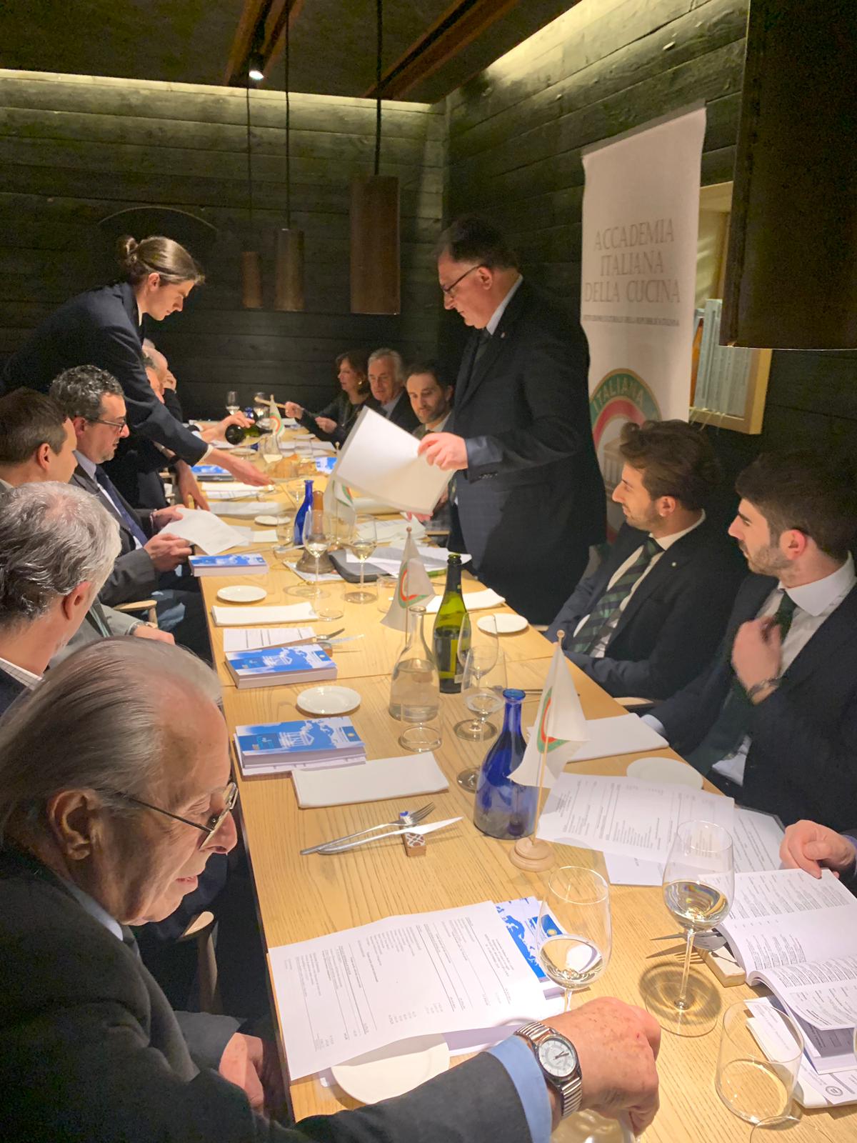 La Delegazione di Fermo, in occasione della riunione conviviale degli auguri, si è riunita presso il ristorante "I Piceni". Simposiarca della serata il Consultore Cristofaro La Corte. Foto 1: il Delegato Fabio Torresi in un momento della serata. Foto 2 e 3: alcuni piatti presentati in occasione della serata dallo chef Giampiero Giammarini.