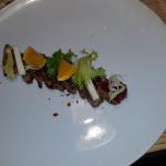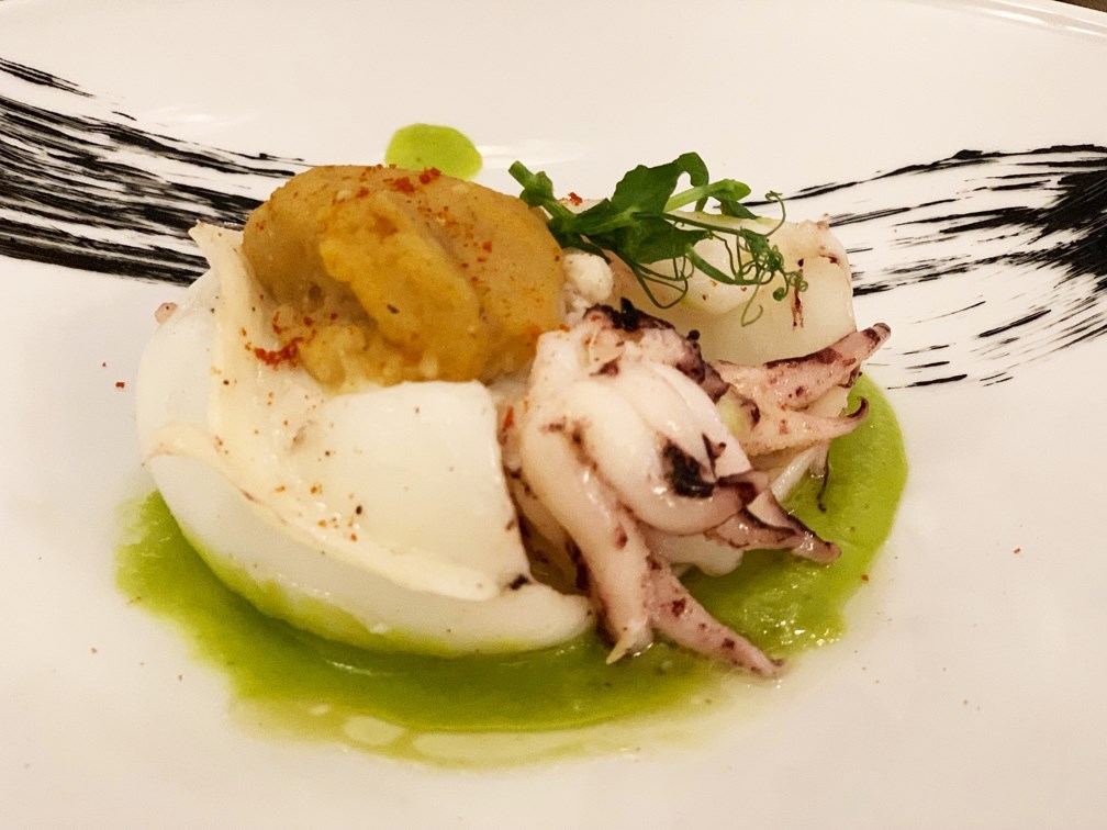 La Delegazione di Genova si è ritrovata presso il ristorante "Dega" per l'appuntamento conviviale. In foto 1 (da sinistra): Accademico Giancarlo Camera, Signora Barbara Recca e Consultore della Delegazione Guglielmo Camera. Foto 2-4: Ravioli di burrata, pomodoro confit e gambero; Seppia ripiena a bassa temperatura; Dulce de leche, sale maldon e cacao.