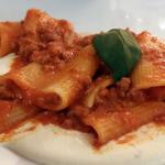 La Delegazione di Enna si è ritrovata, in occasione della riunione conviviale, presso la trattoria "Fulì". Foto 1: (da sinistra) il Vice Delegato Fabio Montesano, la figlia e signora Bellomo titolari della trattoria e il Simposiarca e Consultore Salvatore Tudisco. Foto 2: paccheri al sugo di maialino nero su fonduta di "piacentinu" ennese. Foto 3: cannolo di ricotta.
