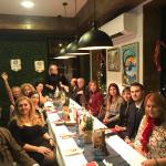 La Delegazone di Sofia, in occasione degli auguri di Natale, si è riunita presso il ristorante "Irituali". Foto 1 (da sinistra): il Consultore-Segretario Niccolò Zanotelli Simposiarca della serata, Jacopo Martino de Carles Vice Delegato, Irina Tencheva proprietaria del locale, Savas Karipoglu chef, Penka Nesheva Delegata, Velislava Nedelcheva e Vanya Tsolova Accademiche. Foto 2: la proprietaria Irina Tencheva e la Delegata Penka Nesheva. Foto 3: Accademici e ospiti. Foto 4: pangiallo romano, una ricetta tra tradizione e innovazione.