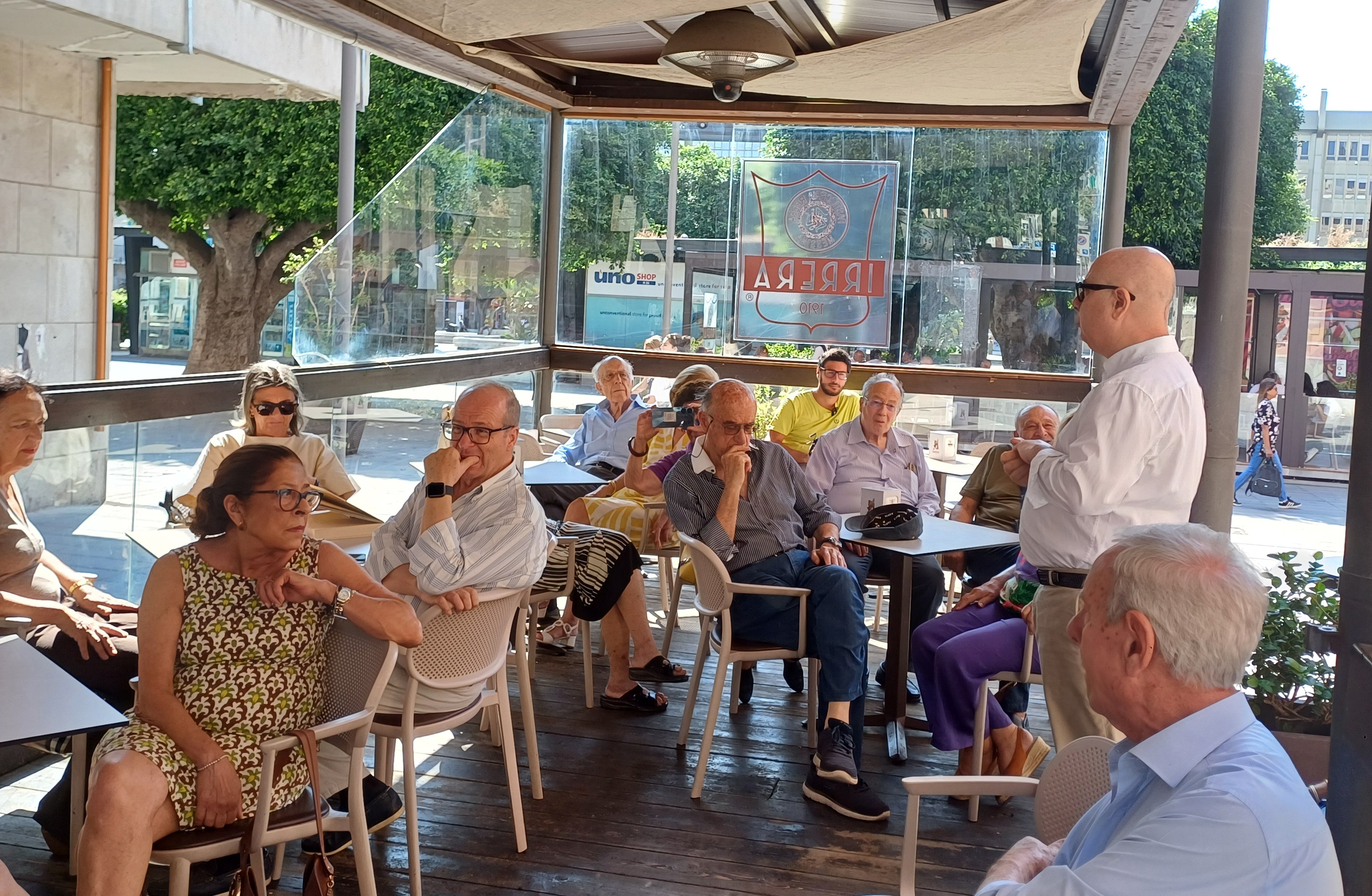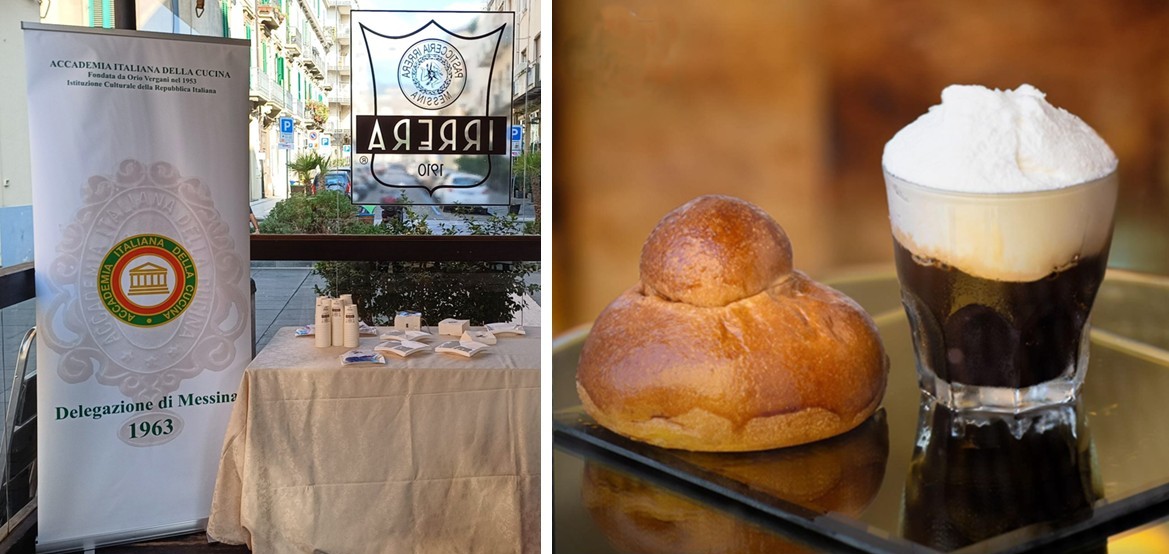 La granita di caffè con panna è uno straordinario prodotto tipico della Sicilia, di Messina in particolare, ove è divenuta un must, un segno di distinzione e caratterizzante dell’offerta gastronomica, che ha conquistato e seduce turisti, dapprima scettici ad assumerla per la prima colazione. La Delegazione ha dedicato un momento di riflessione nel dehors della Pasticceria Irrera in piazza Cairoli, con gli approfondimenti che Renzo Aveni, patron dell’antico esercizio nato nel 1910, e Vittorio Barbera, imprenditore della torrefazione più antica d’Italia, hanno offerto coordinati dal Delegato. È stata raccontata la raffinata preparazione della granita, chiarito quale miscela, l’arabica 100%, è più richiesta per una riuscita ottimale. Durante la degustazione gli Accademici hanno apprezzato anche la variante cremolata di fragola. La Delegazione ha elogiato il maestro pasticcere Nino Pandolfino per i suoi 45 anni di attività con un omaggio, consegnando inoltre la vetrofania dell’Accademia al patron Aveni e una pubblicazione accademica a Barbera. La partecipazione al “rito” della granita ha rappresentato un momento di condivisione tra gli Accademici, celebrando la tradizione del gusto e il legame dolciario con il territorio.