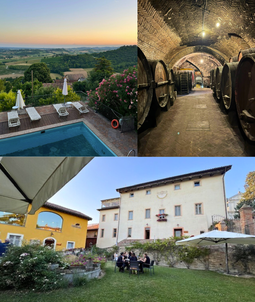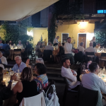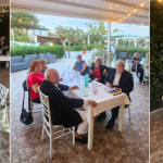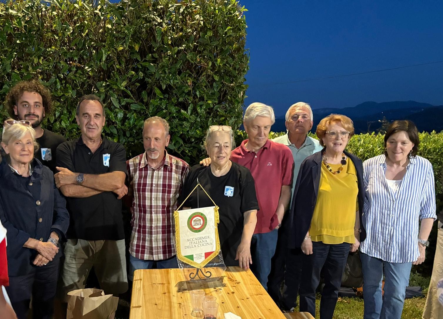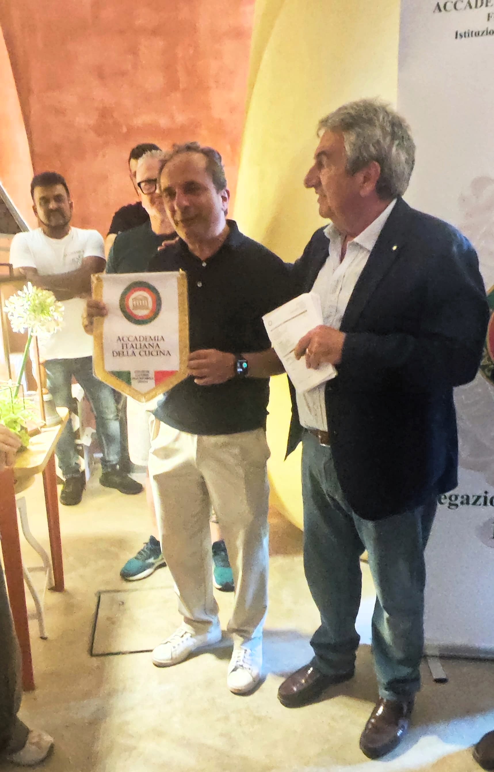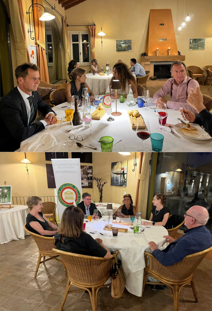 La Delegazione è stata accolta, sulla collina di Falciano, nel suggestivo ambiente rustico e panoramico dell’agriturismo Le Bosche. L’attività, profondamente radicata nella tradizione sammarinese e romagnola, è gestita da Nevio, che conduce con semplicità un lavoro a stretto contatto con la natura, tra coltivazioni, allevamenti e vita all’aria aperta. Da questa filosofia nasce la cucina dell’agriturismo, basata su prodotti autentici e stagionali. Il menù, rigorosamente a km 0, è stato servito a bordo piscina, a pochi chilometri dal mare di Rimini. Gli Accademici hanno riconosciuto l’atmosfera magica del luogo, ideale per una calda serata estiva, e hanno apprezzato particolarmente il dessert e la qualità dei vini, non sono però mancati alcuni aspetti critici, che hanno evidenziato margini di miglioramento.