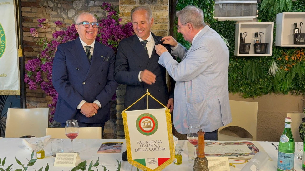 Una serata all’insegna della gastronomia, dell’identità locale e della memoria storica ha animato l’evento della Delegazione del Vasto, guidata da Adri Cesaroni. L’incontro, tenutosi al ristorante “Sunrise” sulla Loggia Amblingh, è stato dedicato alla valorizzazione della pescatrice e ha rappresentato un momento di alto profilo culturale, capace di coniugare gusto, riflessione e riconoscenza. Durante la cena, Cesaroni ha omaggiato il past Delegato Rocco Pasetti con un riconoscimento per i suoi 35 anni nell’Accademia. Pasetti ha ricordato l’importanza del legame tra cucina e territorio, citando tra i suoi traguardi il riconoscimento del brodetto alla vastese come piatto tradizionale italiano. Il Vice Presidente vicario Mimmo D’Alessio ha ribadito il ruolo dell’Accademia nel preservare le tradizioni culinarie locali in un’epoca di omologazione culturale. Ospite della serata è stato Alessandro Cianci, autore di A spasso per Vasto, che ha raccontato la storia della città. Il menù, ideato dallo chef Costagliola con il simposiarca Rufilli, ha celebrato la pescatrice con creatività e rispetto della tradizione.