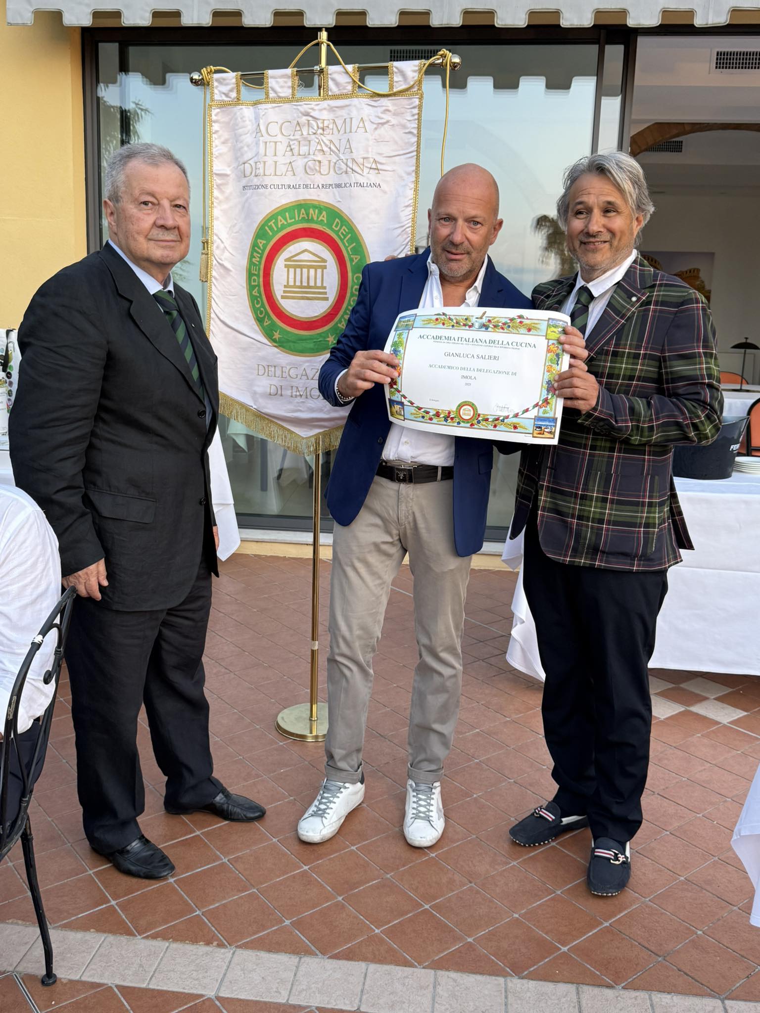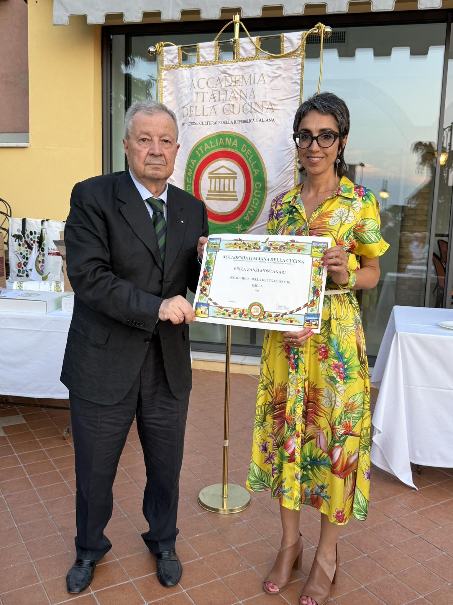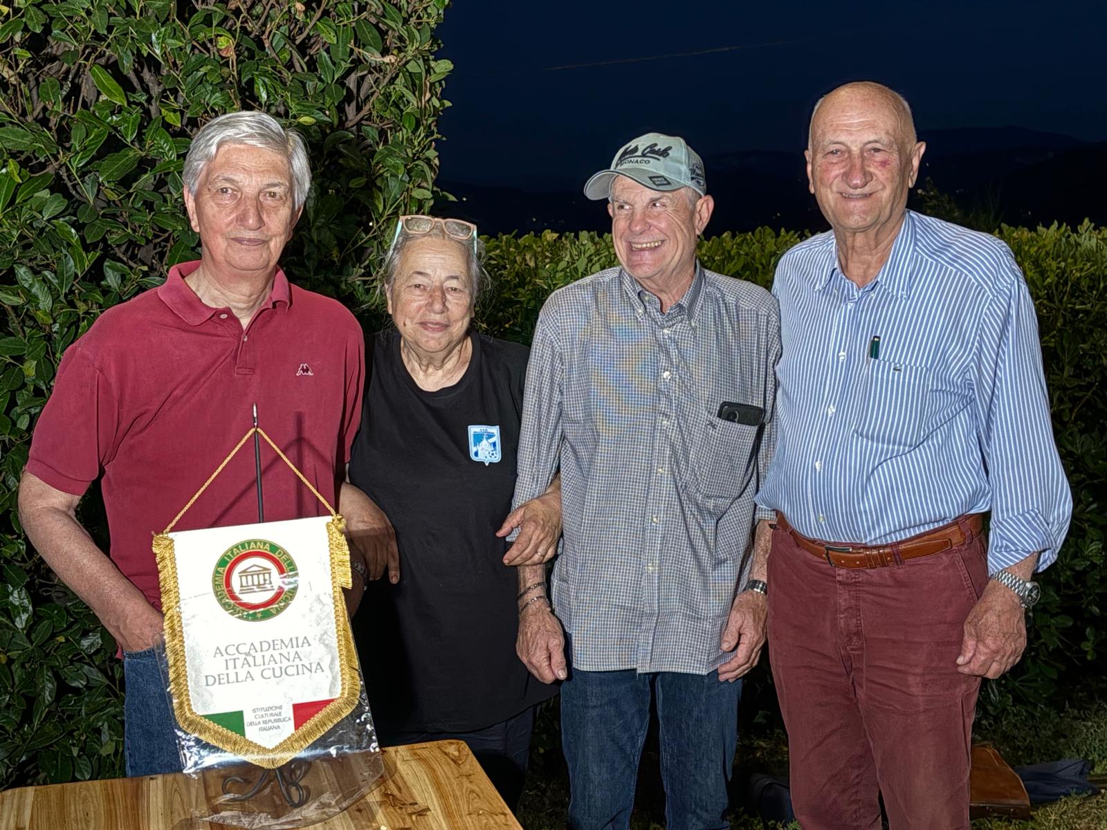 Il solstizio d'estate ha accompagnato gli Accademici imolesi nella riunione conviviale di metà anno sulla panoramica terrazza del ristorante Canè nel borgo antico di Dozza, celebre anche per la rassegna biennale del Muro Dipinto. Ad impreziosire la serata sono state la consegna dell'attestato di appartenenza venticinquennale a Pier Francesco Maria Cenni e le cerimonie di ingresso nella Delegazione, non prive di emozione, della Signora Erika Zanzi Montanari e del Signor Gianluca Salieri. Sono stati tutti accolti con un affettuoso applauso testimoniando il valore dell'amicizia che trova nella convivialità un cardine naturale.
