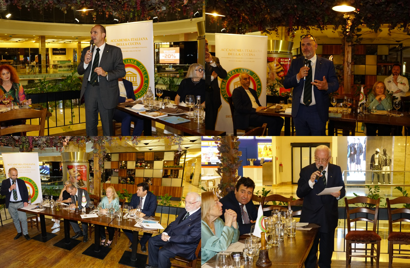 Presenza storica nell’ambito della ristorazione italiana a Budapest, il ristorante "OK ITALIA ARENA" è parte di una catena di locali di cui tre situati nei principali centri commerciali della città ed uno lungo una delle principali arterie del centro cittadino. Sotto la attenta supervisione del Simposiarca Segretario Giulio Marcianò, lo chef Andrea Dal Gesso ha proposto un tipico menù di pesce della tradizione italiana, combinando sapientemente gusti e sapori. L’Accademico Armando Salierno ha intrattenuto i partecipanti sul tema “Freschezza, bontà e consumo consapevole: un trinomio inscindibile per gustare il pesce in tavola d’estate”. Eccellente e cordiale il servizio. Di qualità l’abbinamento dei vini serviti.