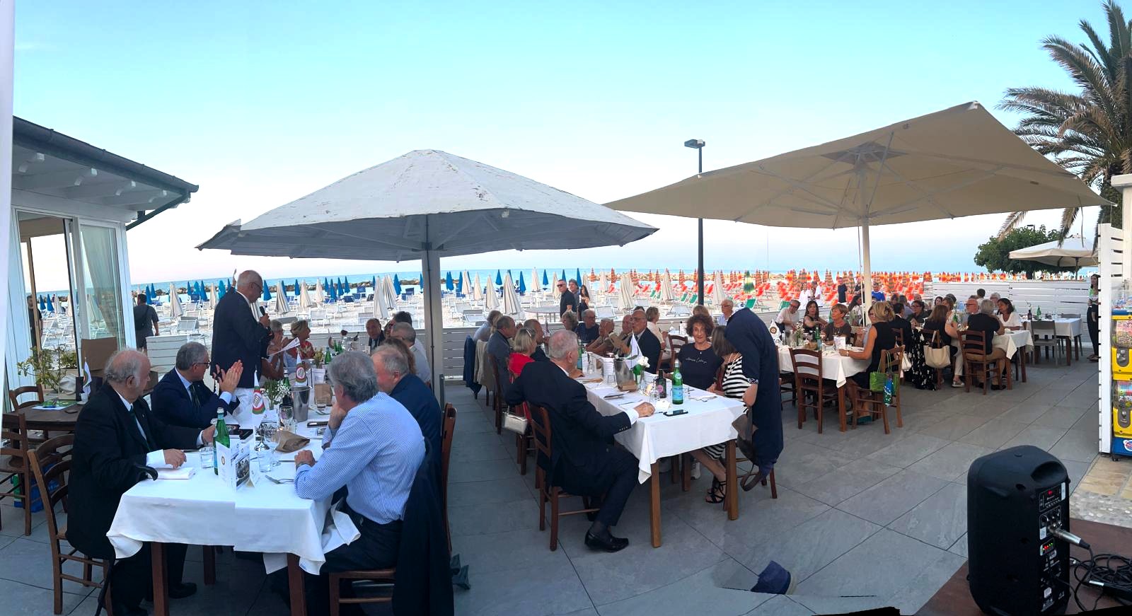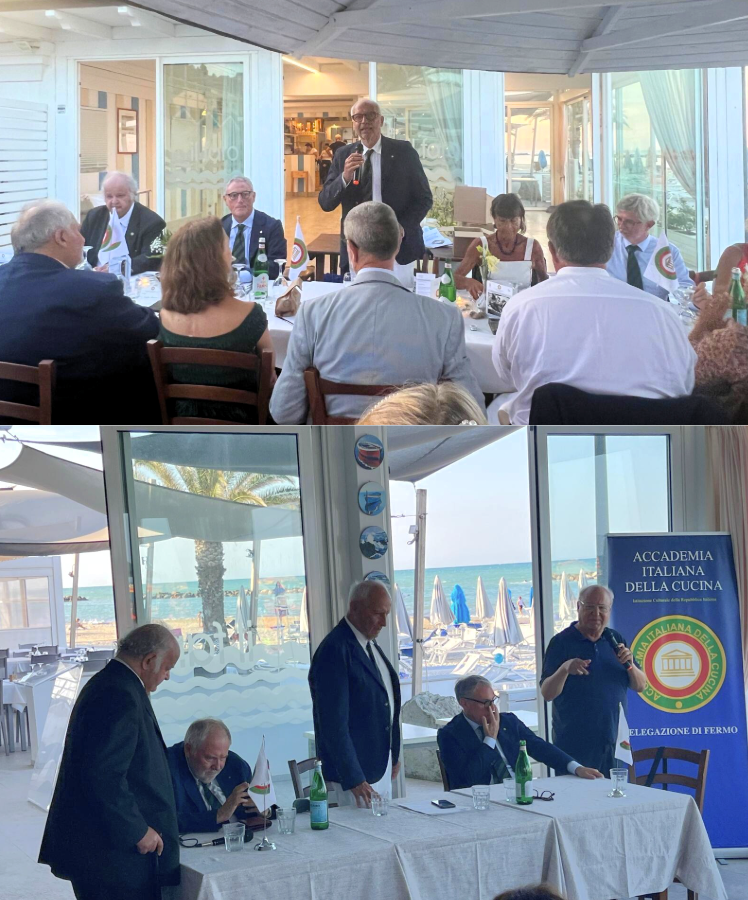 Con il caldo africano alle porte, la scelta della location per l’incontro di giugno è ricaduta facilmente, insieme alla Simposiarca Dina Bruni, sul ristorante dello chalet “La Lancette” di San Benedetto del Tronto (Il nome richiama il termine dialettale lancetta, piccola barca da pesca). Il ristorante, noto per la cucina autentica del territorio, è guidato da Marilena Papetti e suo figlio Luca Neroni, discendenti di una famiglia di pescatori che ha loro tramandato la cucina della marineria sambenedettese. Il menu, costruito su piatti tipici, ha riscosso l’apprezzamento unanime dei partecipanti. Oltre agli antipasti stuzzicanti, i due assaggi di primo hanno riportato alla memoria sapori di casa. I dessert, preparati dagli stessi chef, hanno concluso degnamente il pasto. Molto graditi anche i vini in abbinamento, un “Pecorino Brut” e una “Passerina”, forniti da una storica cantina locale. Tra gli ospiti, l’Accademico Leonardo Seghetti. Durante la serata, la chef Papetti ha raccontato aneddoti di famiglia, mentre il marito, Franco Neroni, ha sorpreso i presenti intonando arie d’opera con la sua voce baritonale.