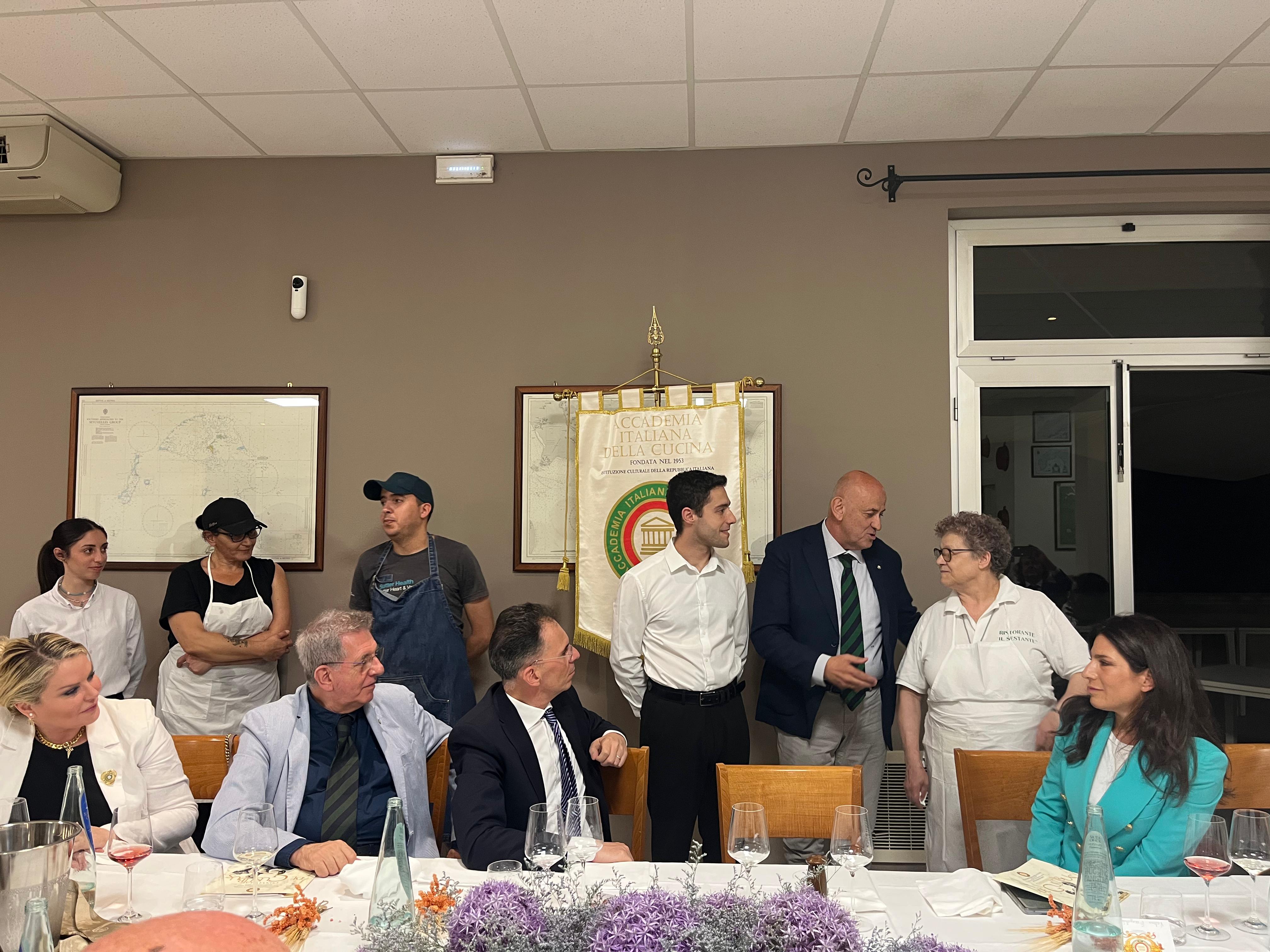«Il convivio è la dimensione tipica del mondo antico, dove frangere il pane era frangere la cultura»: così il prof. Francesco Berardi, ordinario di Lingue e Letteratura Latina presso l’università «G. d’Annunzio» di Chieti ha esordito nella sua relazione culturale che ha accompagnato il «Convivio De Gustibus», celebrato dalla Delegazione teatina presso il ristorante «Il Sestante», proprio in riva al mare, in una delle spiagge più belle di Ortona. Riprendendo il filo della letteratura latina, dagli Ediphagetica di Ennio fino agli scritti tardo-imperiali, senza dimenticare i classicissimi Apicio, Marziale e Petronio, che ci hanno lasciato un patrimonio di descrizioni culinarie del mondo antico, il relatore ha dimostrato la profonda connessione tra cibo e cultura, un’esigenza nata a Roma antica dal contatto con la cultura greca. La riunione conviviale, il cui Simposiarca è stato il Delegato, Nicola D’Auria, ha riconfermato le grandi doti in cucina della signora Gabriella Pantaleone, moglie dell’indimenticato Vasilios Vassiliopoulos che ha aperto diversi decenni fa il ristorante, che oggi si giova della presenza del talentuoso figlio Georgios: un tripudio di pesce cucinato nella migliore tradizione marinara abruzzese.