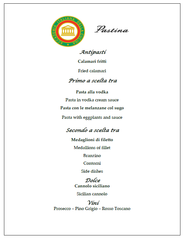 Riunione conviviale della Delegazione presso Pastina Trattoria, un vero e proprio punto di riferimento culinario nel cuore di Westwood, a Los Angeles, guidato dal Sig. Franco Caputo, autentico napoletano DOC. L’evento ha espresso i valori dell’Accademia: eccellenza gastronomica, tradizione e convivialità. In un ambiente elegante, accogliente e luminoso, gli ospiti sono stati accolti con un calice di Prosecco. A tavola, antipasto di calamari fritti con salsa marinara fatta in casa. Il primo ha offerto due paste: Penne alla Vodka, cremose e leggere, e pasta alle melanzane in salsa di pomodoro e basilico, omaggio alla cucina napoletana. Come secondo, scelta tra un tenero Filet Mignon con salsa demi-glacé e un branzino intero alla griglia, eseguito con maestria. Il dessert, un raro Cannolo Siciliano autentico, è stato il momento clou: a Los Angeles è difficile trovarne uno così fedele alla tradizione. La Delegata Alessandra Malanga ha poi tenuto una brillante presentazione sulla storia del cannolo, dalle origini arabe alla diffusione in America nel dopoguerra. L’evento ha unito cultura, tradizione e sapori autentici, con grande soddisfazione dei presenti. Serata riuscita, ottimo servizio e punteggio alto. Simposiarca: Alessandra Malanga e la Vice Delegata Paola Lorenzi.