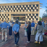 Nel 2022 i Delegati di Ciriè e Ivrea si ritrovarono a cena per ridefinire i confini tra le due Delegazioni. Fu sufficiente quella cena e la conseguente ratifica del Consiglio di Presidenza a suggellare una crescente cordialità tra le due realtà. Da qui nasce la conviviale all’Albergo Ristorante Tre Re di Castellamonte, luogo simbolico dove sessantun anni fa nacque la Delegazione di Ivrea. Accolti nel fresco dehors estivo, gli Accademici ciriacesi ed eporediesi hanno condiviso una serata all’insegna dell’amicizia, guidata dai simposiarchi Emilia Sabolo ed Ettore Brunero. La serata è stata preceduta dalla visita all’Istituto Marxer di Loranzé, esempio di architettura brutalista. Accompagnati da Alberto Redolfi, Consultore di Ivrea, i partecipanti sono stati accolti da Diego Nigra (Consorzio Insediamenti Produttivi del Canavese) e Alessandro Demaria (Sertec), impegnato nel recupero dell’ex laboratorio farmaceutico fondato da Silvia Olivetti. Giorgio Nepote Visin, dottorando in architettura, ha ricordato come ad Adriano Olivetti si deve anche la nascita del Consorzio Produttori del vino di Carema e della cantina Sociale di Piverone, senza contare i famosi orti, poco lontani, per le mense. Gianfranco Franciscono ha portato i saluti di Confindustria Canavese, tra gli ospiti anche Gaetano Di Tondo, presidente dell’Archivio Storico Olivetti.