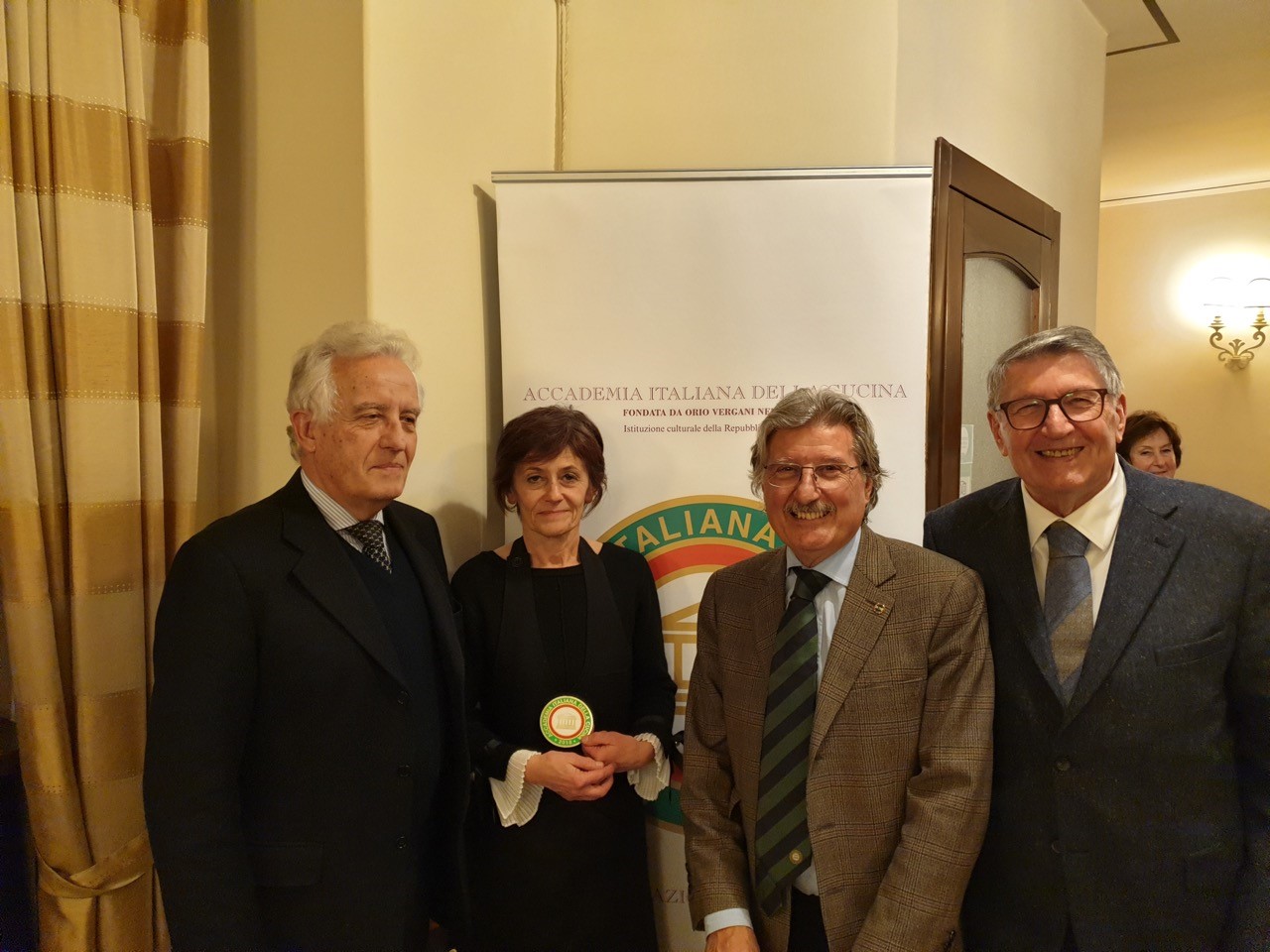 La Delegazione di Milano, in occasione della cena degli auguri, si è riunita presso il "Circolo Volta". Tanti sono stati gli ospiti presenti e le sorprese durante la serata per la ricorrenza dei sessantacinque anni della costituzione dell'Accademia e anche della Delegazione di Milano. Foto 1 (da destra): Dino Betti van der Noot Delegato di Milano, Roberto Ariani Segretario Generale e Tesoriere, lo chef Walter Ferretto, Elisabetta Cocito Segretario del Centro Studi "Franco Marenghi". Foto 3: Roberto Ariani e Dino Betti van der Noot, a sinistra Livia Pomodoro giurista italiana, ex Presidente del Tribunale di Milano. Foto 4: un momento di intrattenimento della serata.