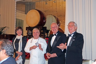 In occasione della "Settimana" la Delegazione di Londra ha organizzato un convegno medico scientifico all’Istituto Italiano di Cultura sugli aspetti salutistici della dieta mediterranea. Foto (1) il Delegato Maurizio Fazzari (al centro) con alcuni relatori dell'evento: da sinistra il dottor Filippo Scandellari, lo chef Giancarlo Caldesi, Massimo Carnelos Consigliere per gli affari economici e commerciali dell'Ambasciata, il dottor Simon Poole di Cambridge e il professor Matteo Lorito dell’Università Federico II di Napoli. La cena di Gala conclusiva della Settimana si è svolta presso il ristorante di Theo Randall all’Hotel Intercontinental. Foto 2 (da sinistra) Francesca Dell’Apa Primo Segretario, affari economici e commerciali dell'Ambasciata, S.E. l’Ambasciatore Raffaele Trombetta, Marina Fazzari, Maurizio Fazzari Delegato, Victoria Trombetta, Alessandro Motta Vice Capo Missione dell'Ambasciata. Foto 3: S.E. l’Ambasciatore Raffaele Trombetta, Theo Randall chef e Maurizio Fazzari.