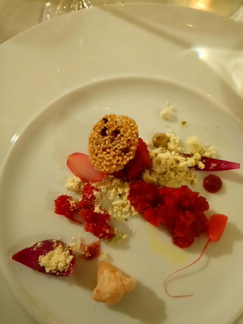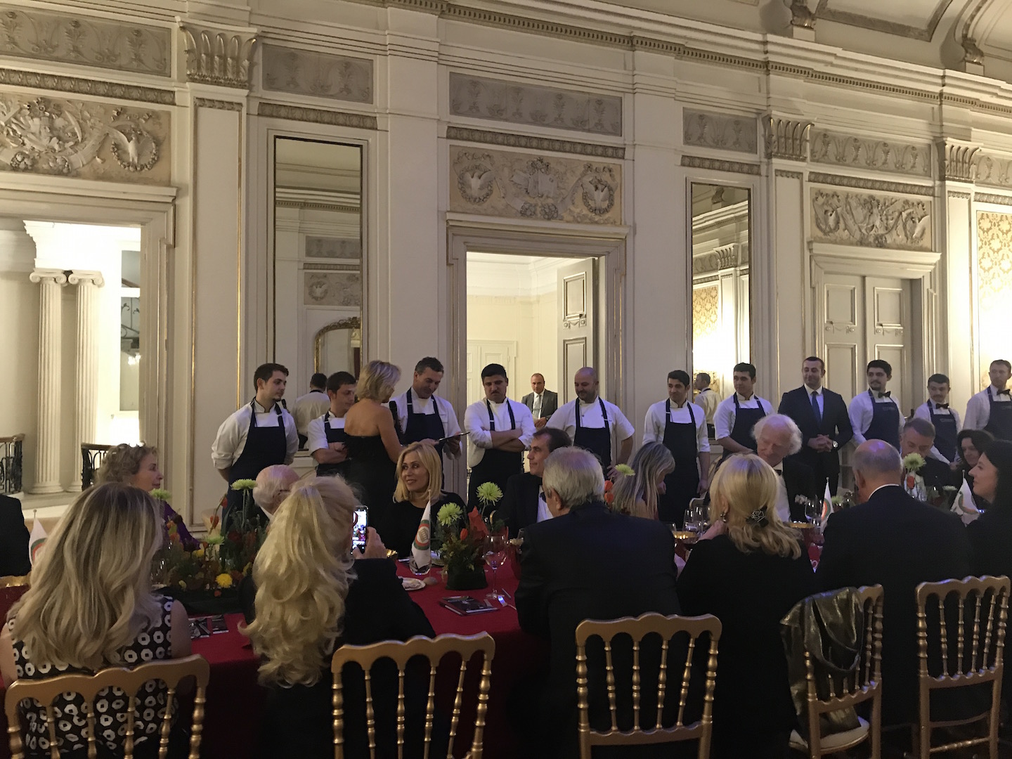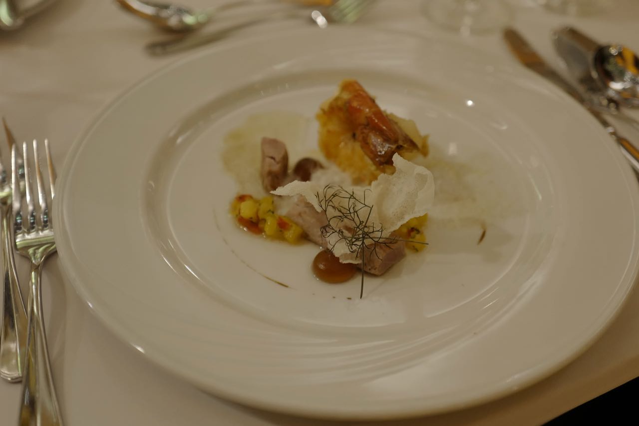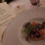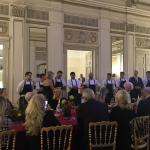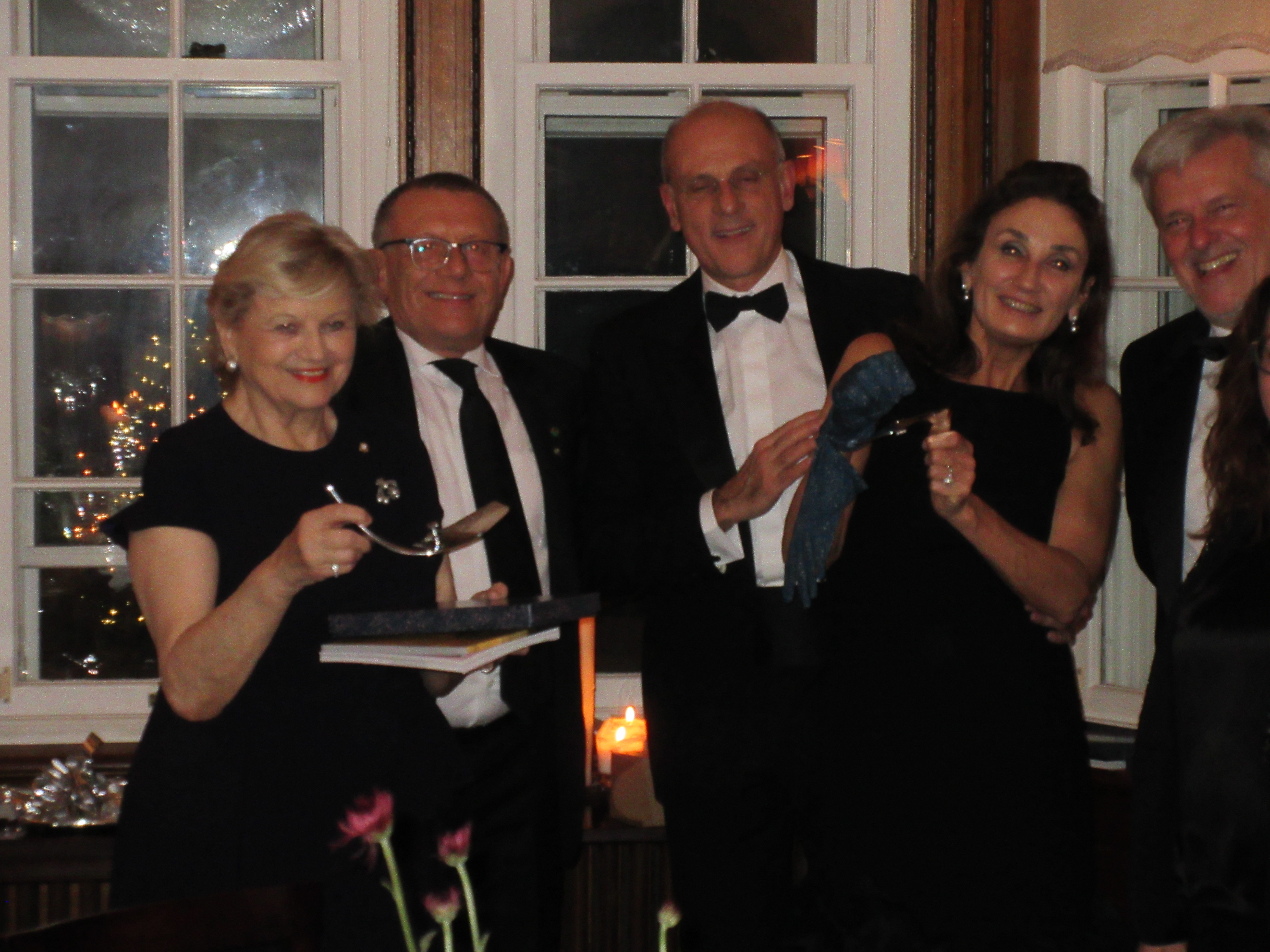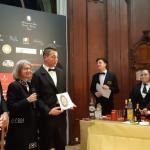 La Delegazione di Budapest ha organizzato il “Gala degli auguri” presso il "Grand Hotel Corinthia". Foto 1: All’evento hanno partecipato molti Accademici e ospiti tra cui S.E Massimo Rustico Ambasciatore d’Italia accompagnato dalla Consorte Monica, S.E. il Consigliere del Segretario di Stato alla Cultura ungherese Lonkay Gabriella e l'Accademico Onorario S.E ex Nunzio Apostolico Alberto Bottari de Castello. Foto 2: la sala riservata all'evento della Delegazione. Foto 3: gamberi tigre marinati, tonno pinna blu con lime soia salsa di mango e base di nocciole. Foto 4: sensazione di pistacchio e cioccolato, vasetto di salsa alle fragole e caramello.