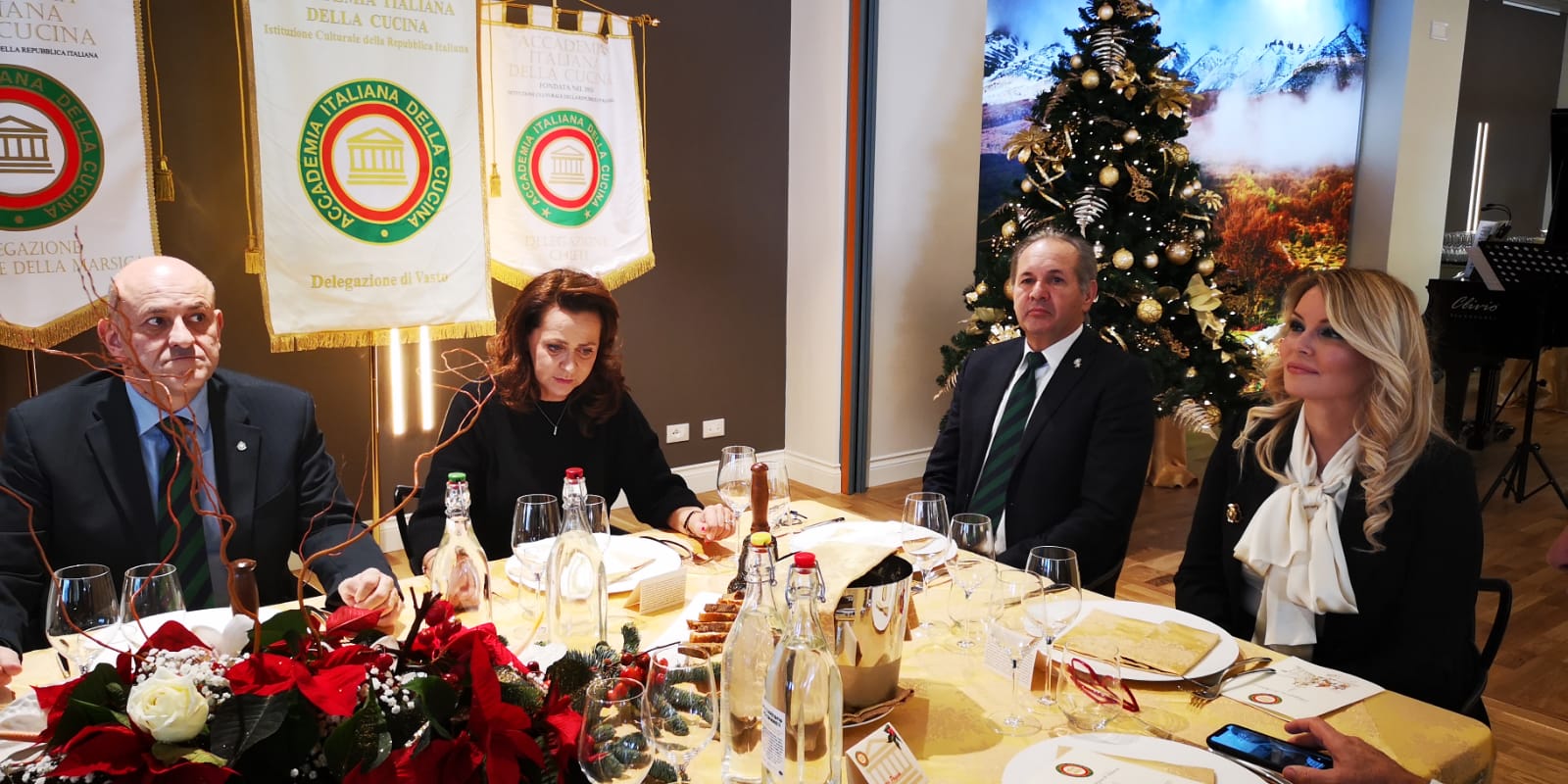 Quest’anno per la riunione conviviale degli auguri di Natale la Delegazione di Latina si è ritrovata a "Villa Meravigliosa" in Borgo Grappa di Latina, presenti numerosi Accademici e ospiti. In foto, al tavolo del Delegato, da sinistra: Antonella Gennaro, signora Anna Prandi, dott.ssa Vittoria Ciaramella Vice Prefetto Vicario di Latina, Gian Luigi Chizzoni Delegato di Latina, Benedetto Prandi Delegato Onorario, Pietro Bianchi Vice Delegato, signora Bianca Bianchi e signora Emilia Chizzoni.
