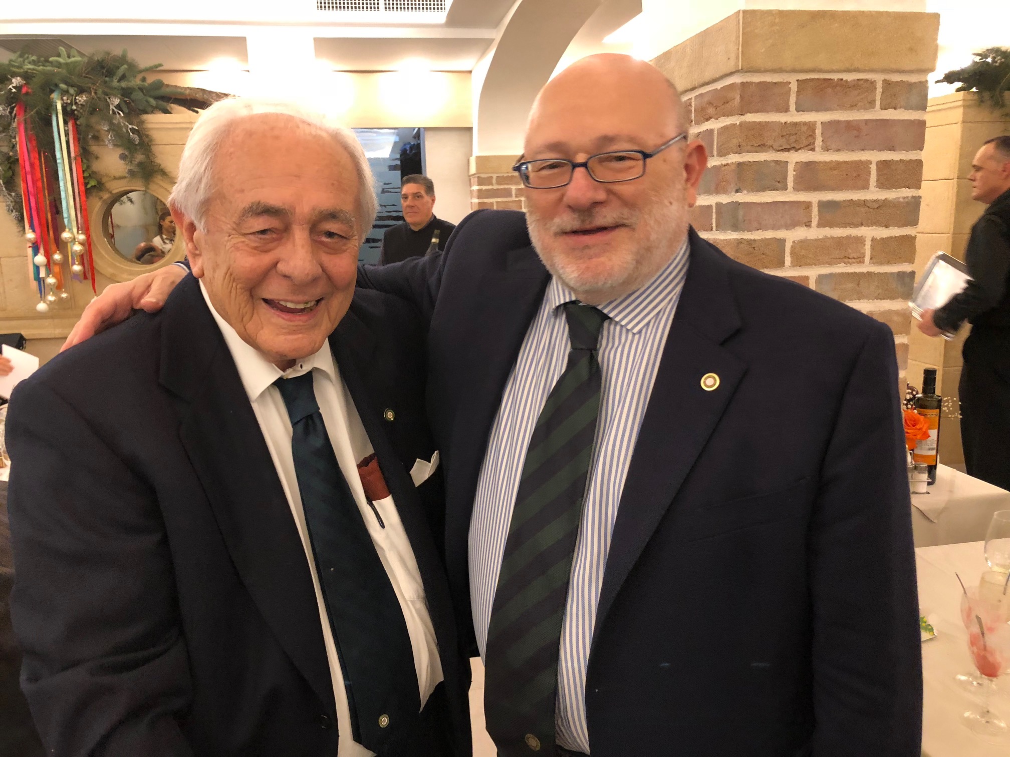 la Delegazione di Rovigo - Adria - Chioggia si è riunita in occasione del pranzo degli auguri presso il ristorante "Al Monte" di Rosolina. Foto 1: il Delegato Onorario Lucio Rizzi consegna al Delegato Giorgio Golfetti il distintivo dell'Accademia per i suoi quarant'anni di attività accademica.
