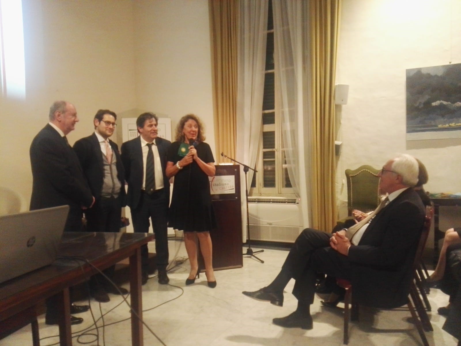 Si è svolta venerdì 16 Novembre, presso l’Ambasciata Italiana a Tokyo, la conferenza di presentazione alla stampa, nazionale e internazionale, della "Settimana". Foto 1: Giorgio Starace Ambasciatore e Accademico Onorario con Emanuela Orighi Legata . Foto 2: foto di gruppo con l'Ambasciatore, Aristide Martellini di Ice, Paolo Calvetti dell’Istituto Italiano di Cultura, Luigi Diodati Console Generale di Osaka, Francesco Rinarelli ICCJ (Italian Chamber of Commerce Japan). Foto 3: una slide della presentazione.