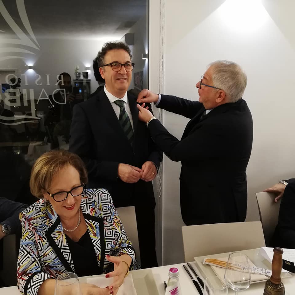 La Delegazione di Alcamo-Castellammare del Golfo si è riunita in occasione della cena ecumenica presso il ristorante "Da Liborio". Foto 1: il Delegato Liborio Cruciata consegna il distintivo al neo Accademico Leonardo Navarra. Foto 2: Accademici riuniti attorno alla torta. Foto 3: un momento della cena.