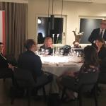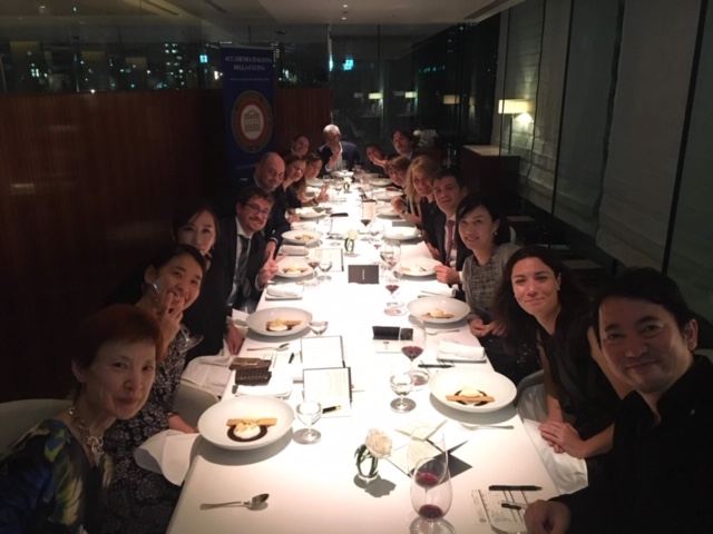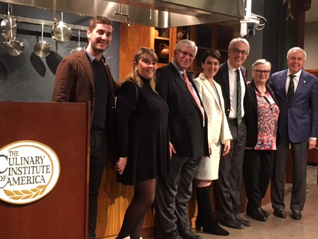 La Delegazione di Montreal-Quebec, guidata dal Delegato Giorgio Lombardi, si è riunita al ristorante "Maison Boulud" del Ritz Carlton dove lo Executive chef emiliano Riccardo Bertolino ha sapientemente coniugato innovazione e tradizione nella preparazione del menu per gli Accademici. Foto 1: un momento della serata. Foto 2: da destra lo chef Riccardo Bertolino, il Delegato Giorgio Lombardi, il Vice Delegato Giuseppe Maiolo. Foto 3: la consegna del guidoncino dell'Accademia allo chef Bertolino. Foto 4: Accademici e ospiti con lo chef.