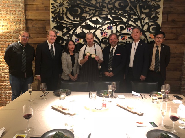 La neonata Legazione di Taiwan ha preso parte agli eventi promossi dall'Ufficio di Rappresentanza Italiana in occasione della terza Settimana della cucina italiana nel mondo. Foto 1: (da destra) Giuseppe Izzo Legato e Donato Scioscioli rappresentante dell'Ufficio Italiano di Promozione Economica, Commerciale e Culturale di Taipei (UIPECC). Sempre nell'ambito della "Settimana" si è svolto il primo incontro ufficiale della Legazione presso il ristorante "Osteria By Angie". Foto 2: Accademici e Legato Giuseppe Izzo (al centro). Foto 3: inaugurazione della Legazione, lo chef Patrick Benedetti riceve la vetrofania dell'Accademia. Foto 4: un piatto presentato in occasione della serata.