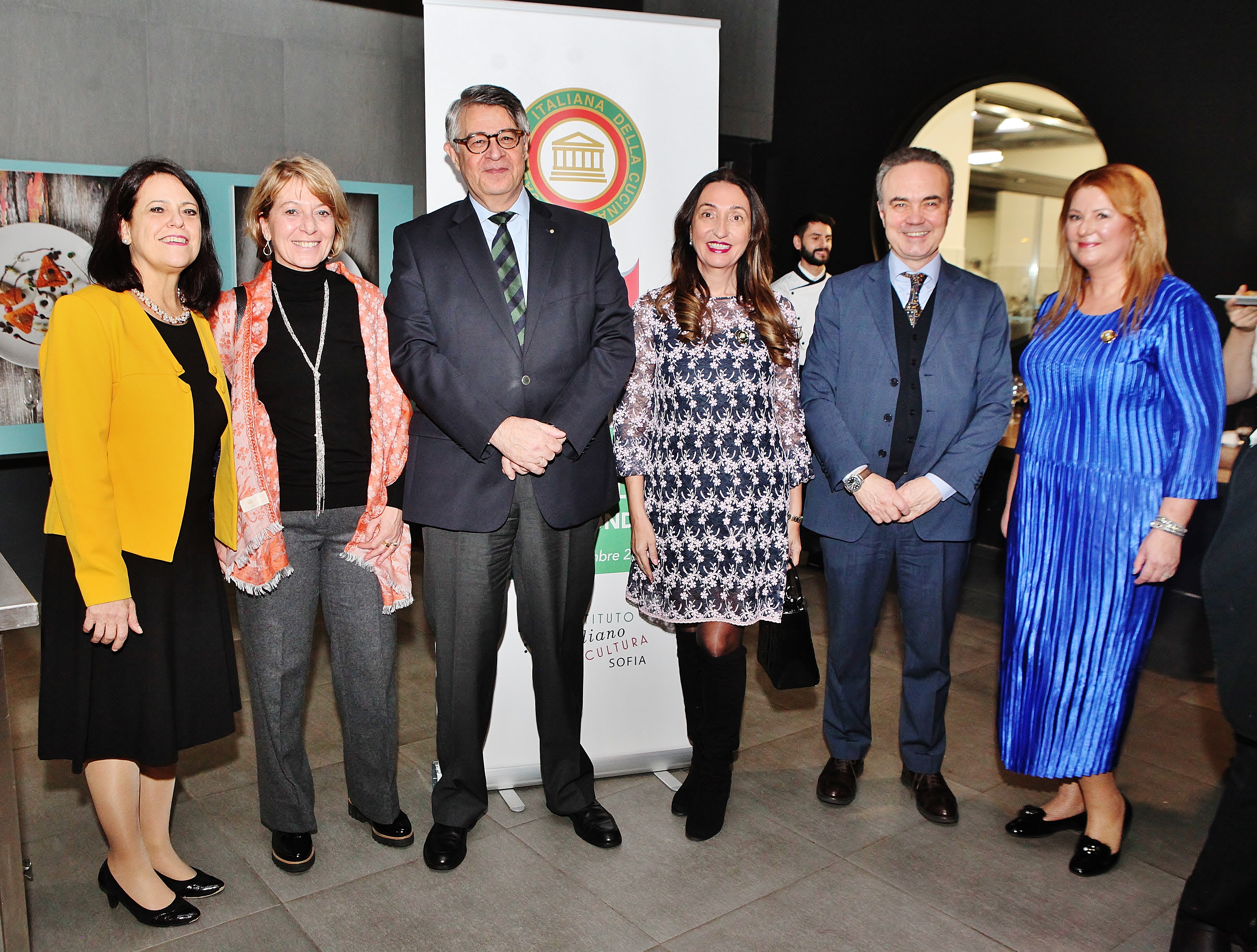 La Delegazione di Sofia, in occasione della "Settimana", ha organizzato presso l'HRC Culinary Academy una dimostrazione culinaria, in collaborazione con l'Istituto Italiano di Cultura a Sofia. Foto 1: (da destra) Penka Nesheva Delegata; S.E. Stefano Baldi Ambasciatore d’Italia a Sofia; Elena Cristiano Accademica; S.E. Grigorius Vassiloconstandakis Ambasciatore di Grecia in Bulgaria; Signora Baldi moglie dell'Ambasciatore; Luigina Peddi Direttrice dell'Istituto Italiano di Cultura a Sofia. Foto 2: lo chef Roberto Dal Seno e la Delegata Penka Nesheva. Foto 3: Accademici e ospiti. Foto 4: lo chef presenta i ravioli ripieni di baccalà, un piatto speciale fuori menu.