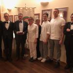 La Delegazione dell'Alto Vicentino si è riunita, in occasione della cena ecumenica, presso la "Locanda Perinella" di Brogliano. Foto 1: al centro studente assegnatario della borsa di studio intitolata a "Luciano Rizzi" (V edizione), a destra il Delegato Renzo Rizzi e a sinistra il rappresentante dell'IPSSAR di Recoaro Terme. Foto 2: il Delegato con i fratelli Perin e lo staff della Locanda. Foto 3: Marco Perin ed il kugelhof (torta). Foto 4: trittico di dolci presentati in occasione della cena.