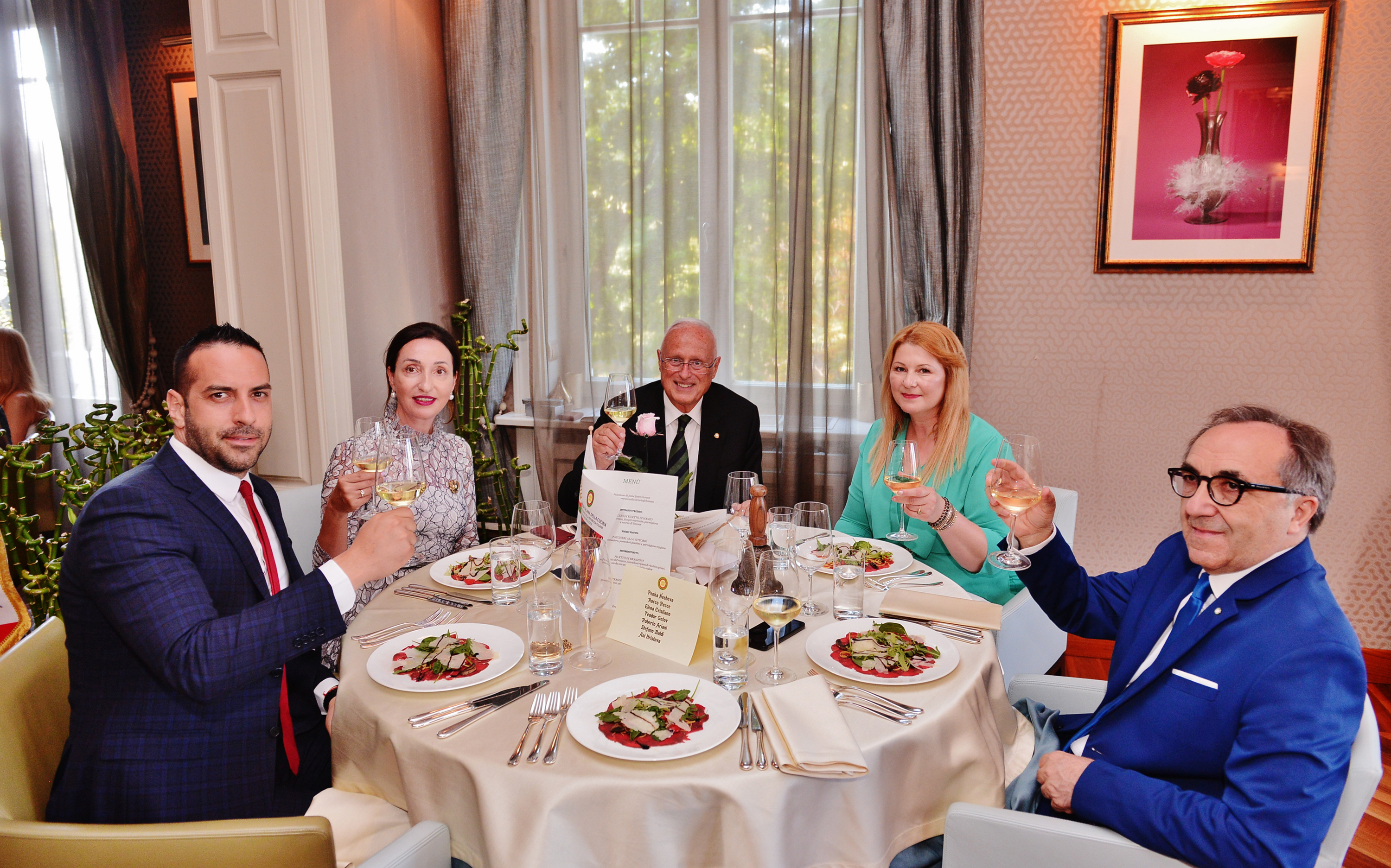 È stata inaugurata la nuova Delegazione di Sofia presso il "Residence Exclusive Club". Foto 1: da sinistra a destra: Accademica Andriana Petkova; Consultore e Tesoriere Velislava Nedelcheva; Consultore Elena Cristiano; Vice Delegato Jacopo Martino de Carles; Ambasciatore d'Italia in Bulgaria Stefano Baldi; Segretario Generale Roberto Ariani; Antonella Pensi, moglie dell'Ambasciatore; Delegata Penka Nesheva; Francesco Martino de Carles; Accademica Vanya Tsolova; il Delegato di Roma EUR Claudio Nacca; Accademica di Roma EUR Tiziana Marconi Martino de Carles; Accademica Veselina Kupenova; Consultore e Segretario Niccolò Zanotelli; Attaché in Bulgaria Giovanna Pasqualone. Foto 2: Il Segretario Generale, Roberto Ariani e la Delegata Penka Nesheva. Foto 3: il Segretario Generale Roberto Ariani e l'Ambasciatore d'Italia in Bulgaria Stefano Baldi. Foto 4: il Segretario Generale, Roberto Ariani, insieme al Consultore e Segretario, Niccolò Zanotelli. Foto 5 - 8: alcuni momenti della serata.