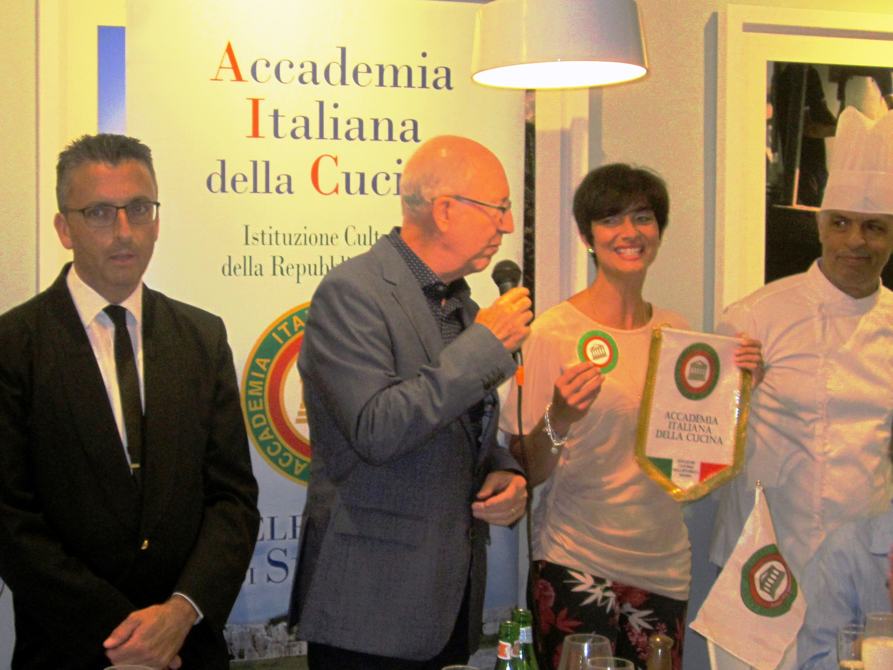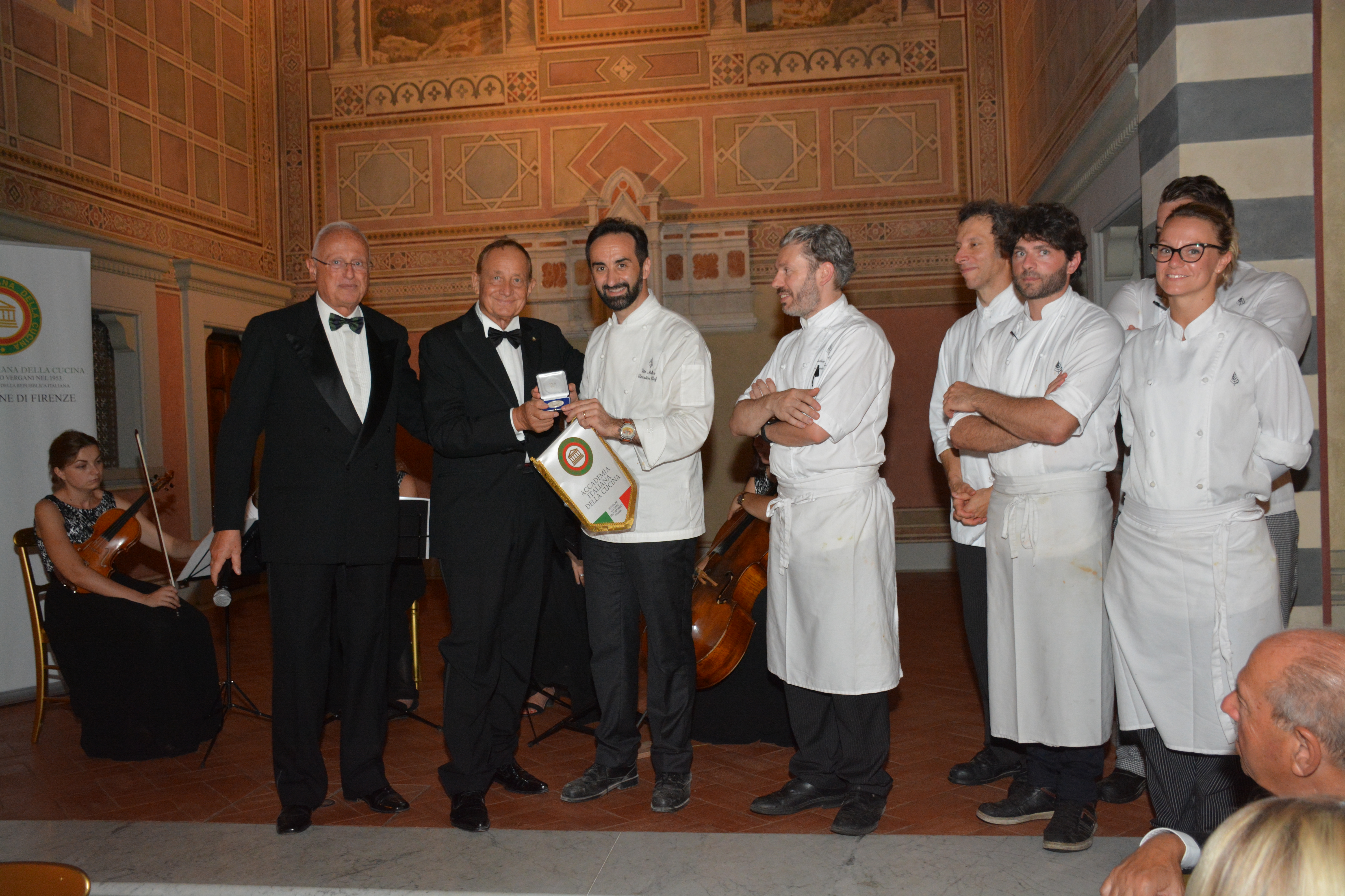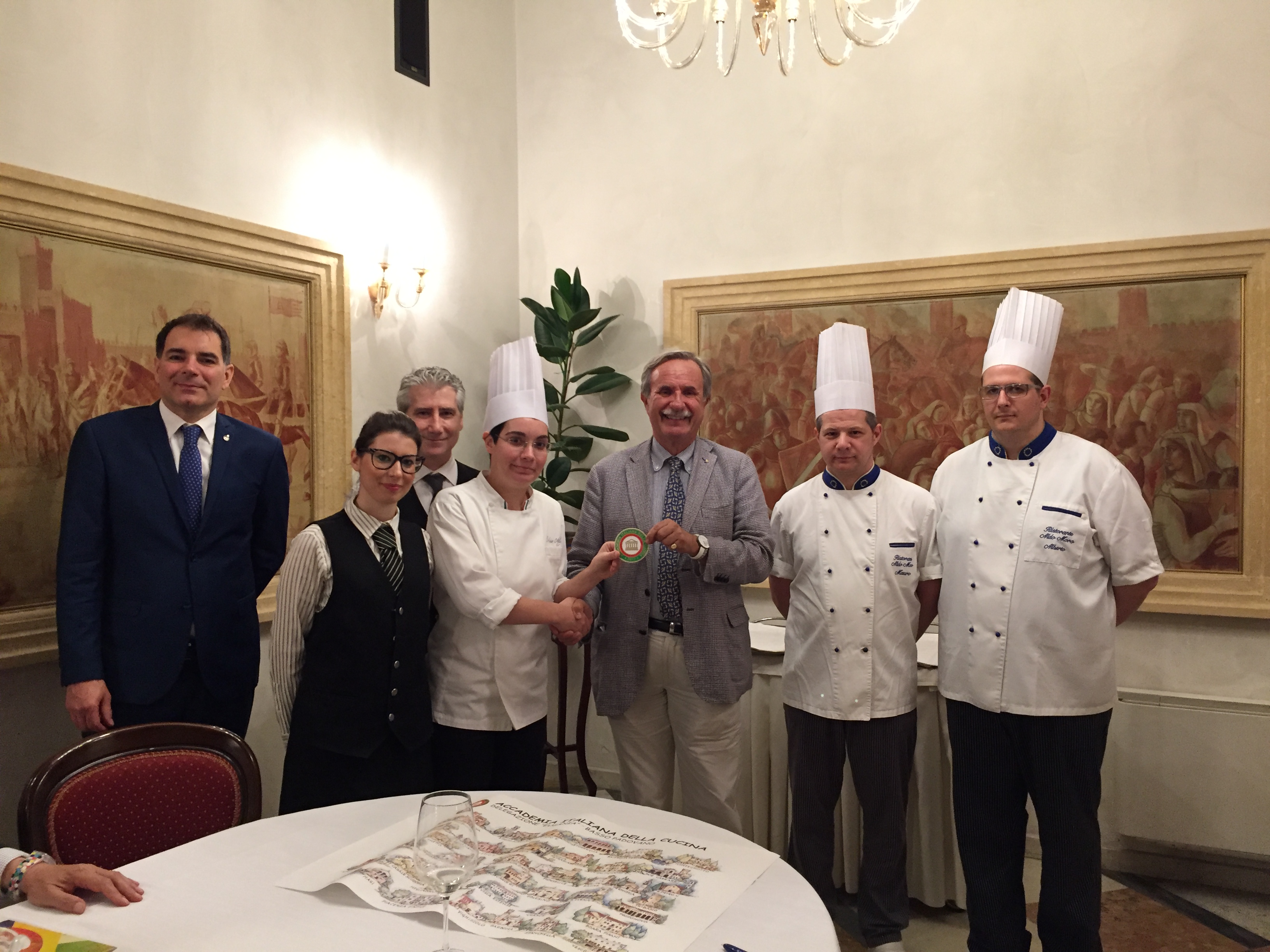 Si è tenuta presso il "Four Season" di Firenze una piacevole serata in onore del Presidente Paolo Petroni a cui hanno partecipato, oltre agli Accademici della Delegazione di Firenze, molti Delegati e Accademici della Toscana. Foto 1: il Delegato di Firenze Roberto Ariani consegna un dono al Presidente Paolo Petroni da parte della Delegazione. Foto 2: omaggio floreale alla signora Roberta Petroni. Foto 3: Rosanna Galletti Delegata dell'Elba e Coordinatrice Territoriale Toscana Ovest e il Sindaco di Firenze Dario Nardella. Foto 4: il Presidente dell'Accademia, Paolo Petroni e il Delegato di Empoli Massimo Vincenzini. Foto 5: il Presidente Paolo Petroni e il Delegato Roberto Ariani consegnano guidoncino e medaglia dell'Accademia allo chef e alla sua brigata. Foto 6: l'elegante sala del Four Season.