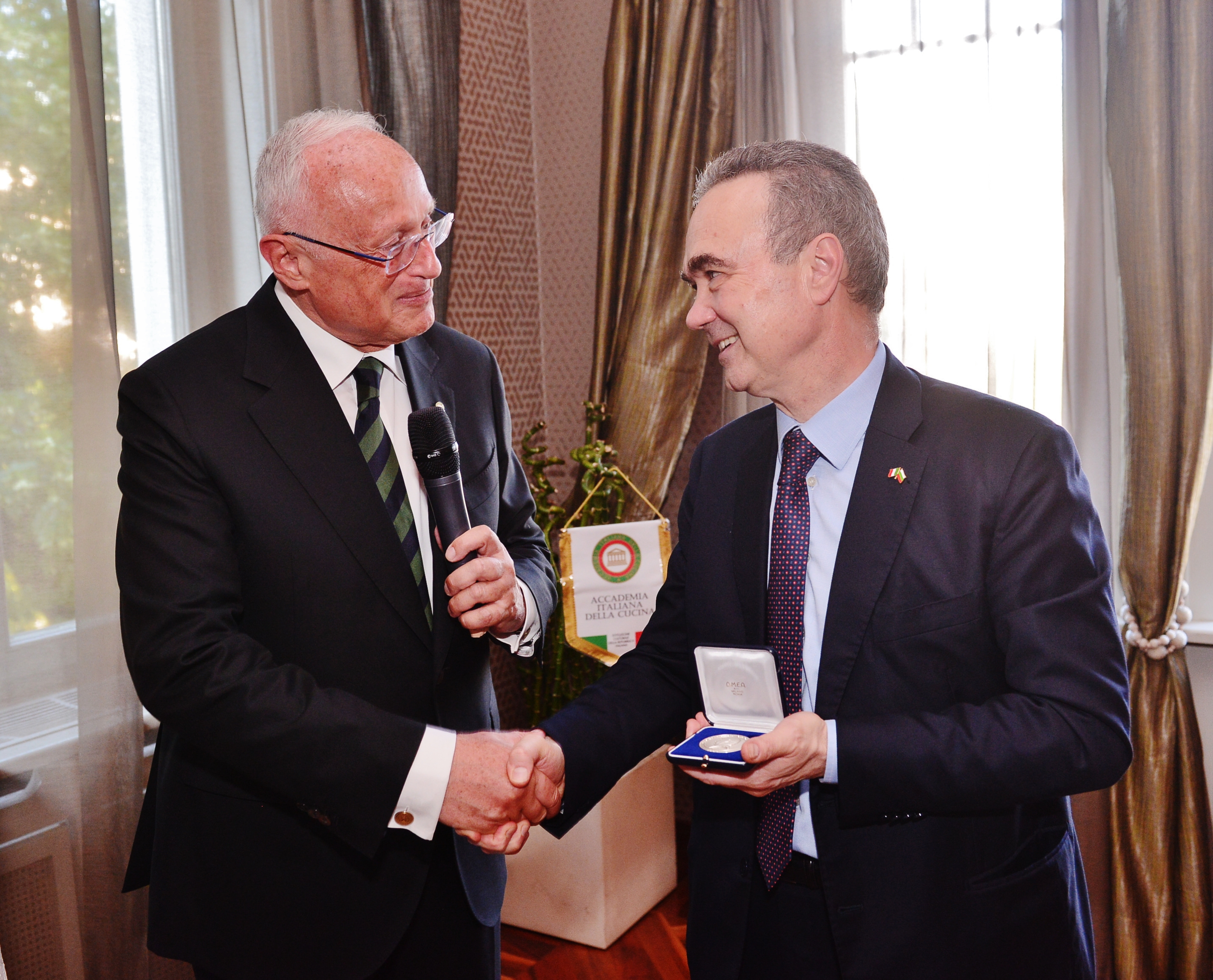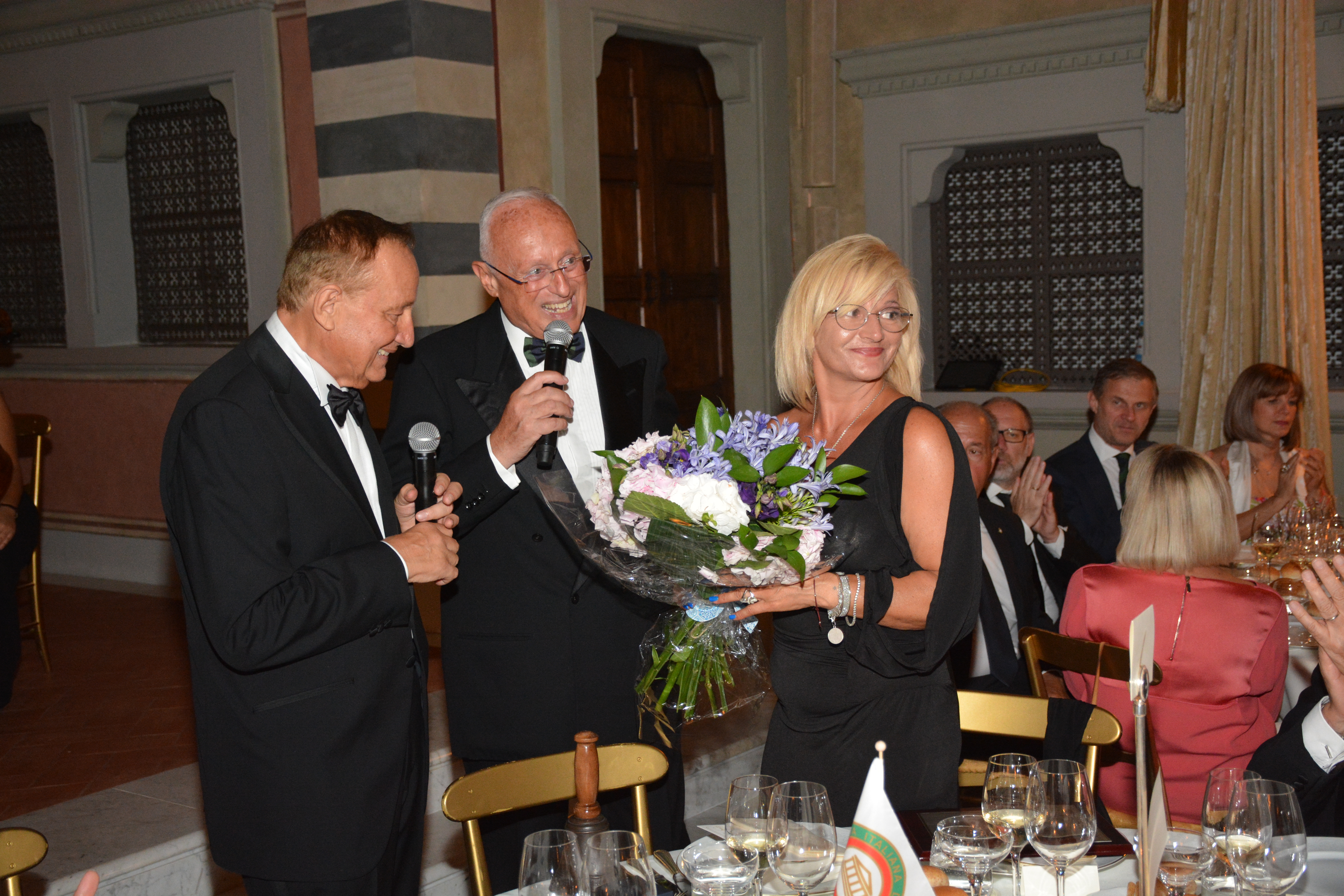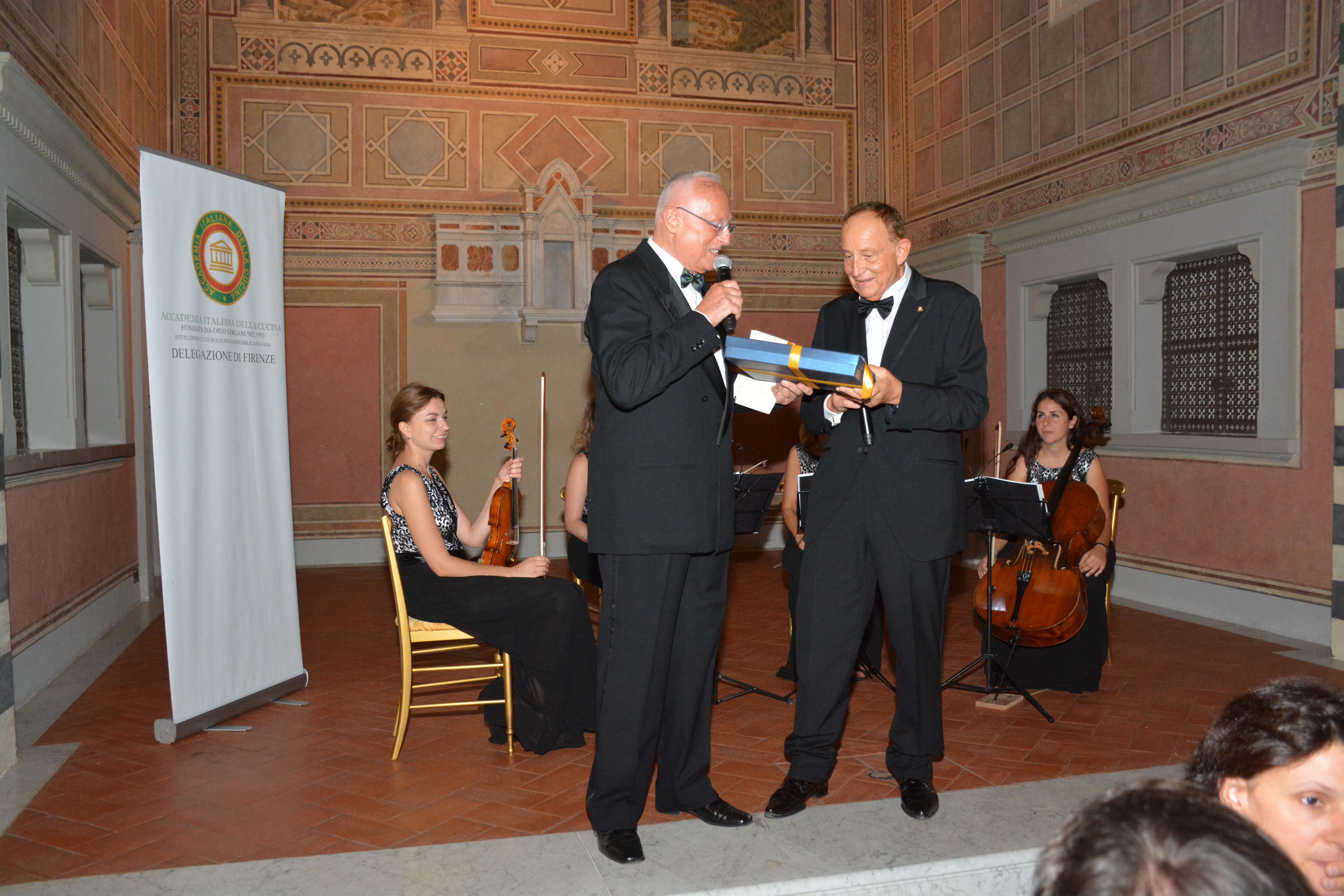 Si è tenuta presso il "Four Season" di Firenze una piacevole serata in onore del Presidente Paolo Petroni a cui hanno partecipato, oltre agli Accademici della Delegazione di Firenze, molti Delegati e Accademici della Toscana. Foto 1: il Delegato di Firenze Roberto Ariani consegna un dono al Presidente Paolo Petroni da parte della Delegazione. Foto 2: omaggio floreale alla signora Roberta Petroni. Foto 3: Rosanna Galletti Delegata dell'Elba e Coordinatrice Territoriale Toscana Ovest e il Sindaco di Firenze Dario Nardella. Foto 4: il Presidente dell'Accademia, Paolo Petroni e il Delegato di Empoli Massimo Vincenzini. Foto 5: il Presidente Paolo Petroni e il Delegato Roberto Ariani consegnano guidoncino e medaglia dell'Accademia allo chef e alla sua brigata. Foto 6: l'elegante sala del Four Season.