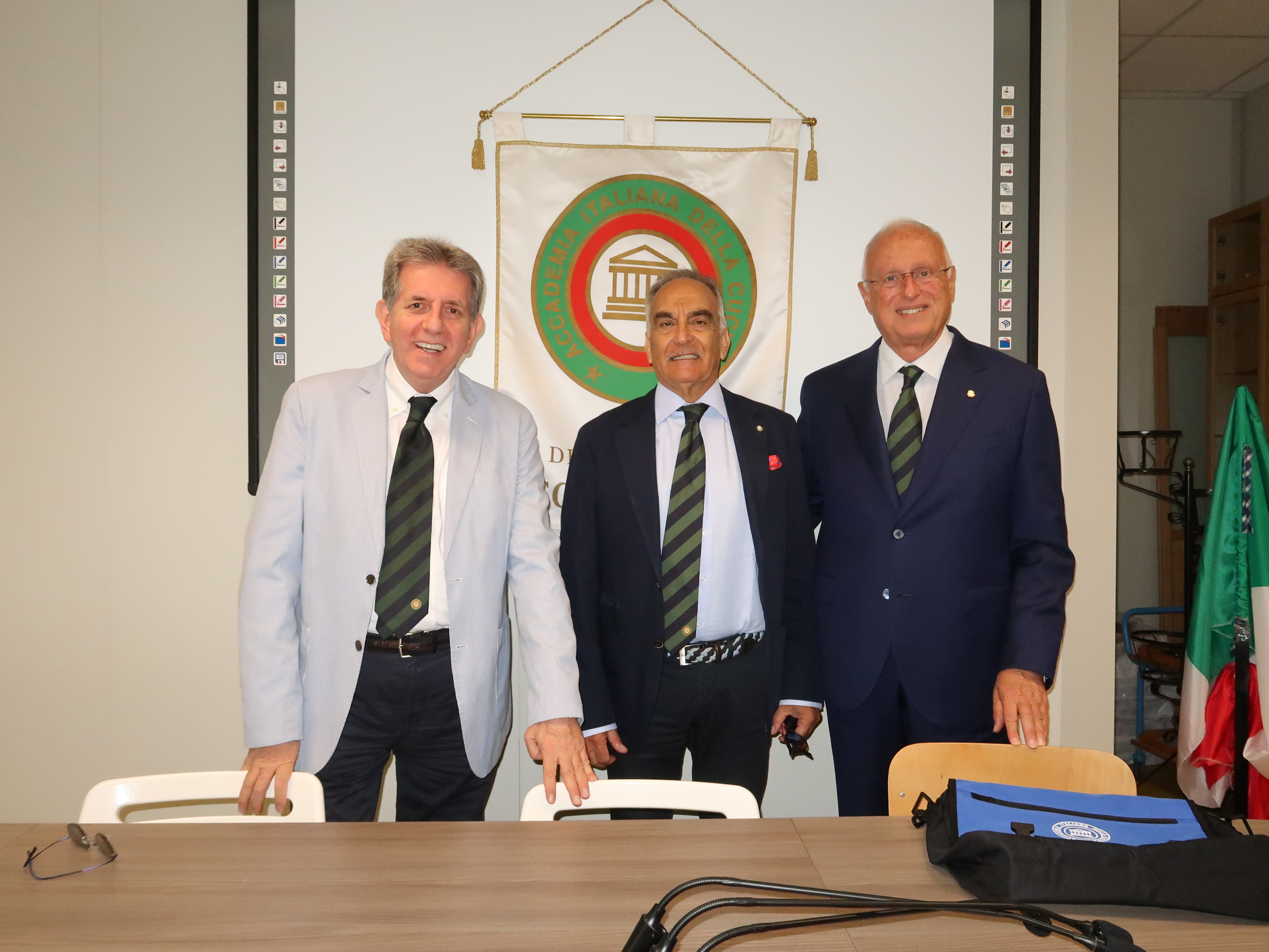 La Delegazione di Ascoli Piceno ha festeggiato il 30° Anniversario della Delegazione presso il ristorante dello storico "Caffe Meletti" di Piazza del Popolo di Ascoli Piceno. Foto 1: al centro, il Delegato di Ascoli Piceno Vittorio Ricci, a sinistra il Delegato di Ancona Pietro Aresta e a destra l'Accademico Piergiorgio Angelini. Foto 2: uno scorcio della sala durante la riunione conviviale del 30° Anniversario della Delegazione di Ascoli Piceno.