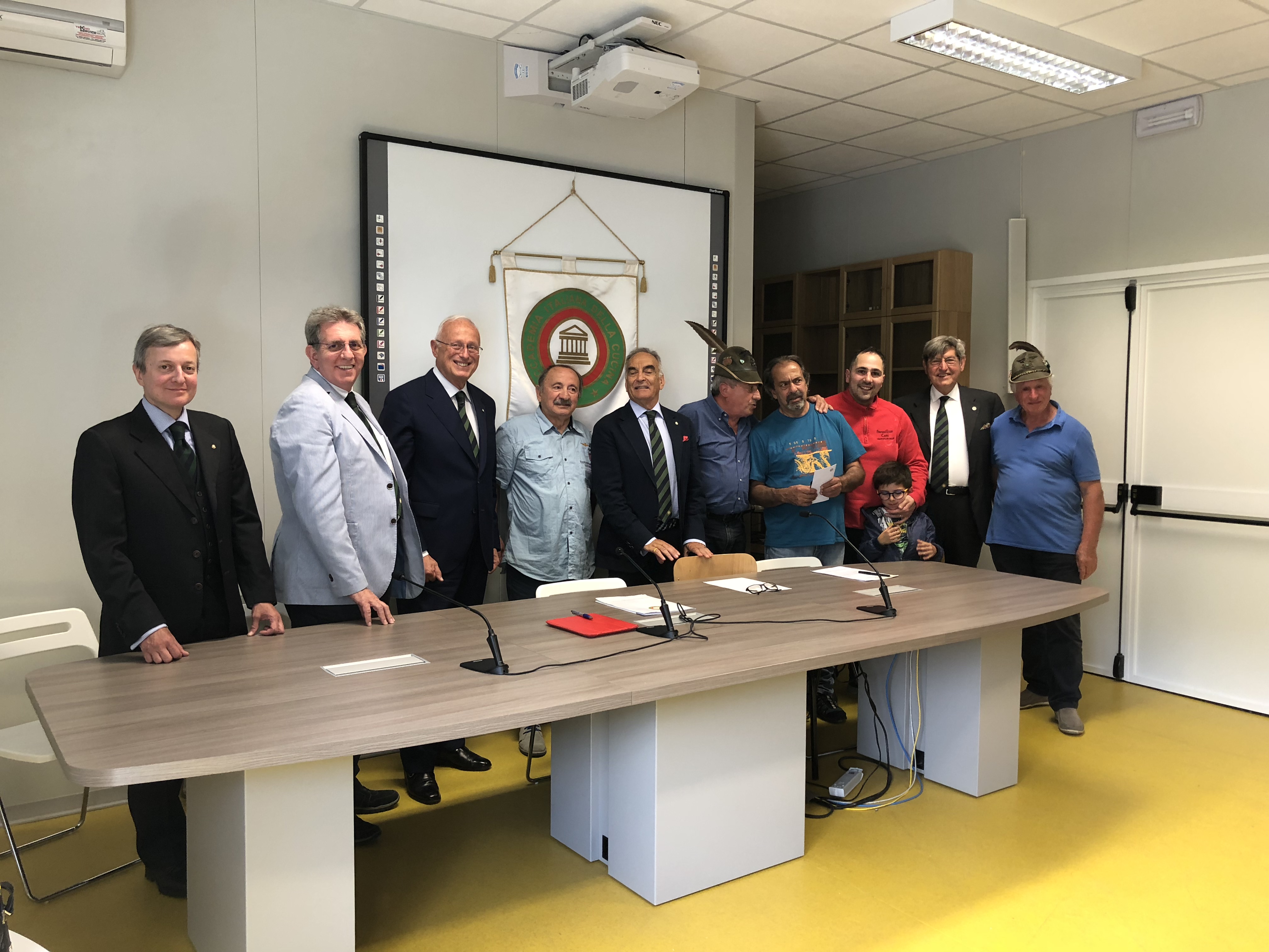 Il Consiglio di Presidenza all'unanimità ha deliberato l'assegnazione di un contributo a Gino Quattrociocchi per poter proseguire la sua attività alla riscoperta dei vecchi sapori nel suo Rifugio delocalizzato dopo gli eventi sismici. Foto 1: (da sinistra) il Consigliere di Presidenza Mimmo D'Alessio, il Delegato di Ascoli Piceno Vittorio Ricci, il Segretario Generale Roberto Ariani. Foto 2 e 3: momenti relativi all'evento. Foto 4-6: consegna del contributo economico e della medaglia al signor Gino Quattrociocchi, proprietario del rifugio degli Alpini. Foto 7: consegna del Premio "Dino Villani" a Vittoria di Cola. Foto 8: un momento dell'evento. Foto 9: foto di gruppo.
