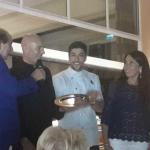 La Delegazione di Tel Aviv si è riunita presso il ristorante "La Repubblica di Ronimotti" in occasione della riunione conviviale. Foto 1: la Delegata Cinzia Klein, S.E. l'Ambasciatore d'Italia Gianluigi Benedetti e lo chef Motti Sofer a cui è stato consegnato il diploma di Buona Tavola. Foto 2: la Delegata Cinzia Klein e il Presidente della Camera di Commercio israeliana Roberto della Rocca. Foto 3: Il fiore di zucca ripieno realizzato secondo una ricetta particolare e personale dello chef. Foto 4: un piatto realizzato in occasione della serata.